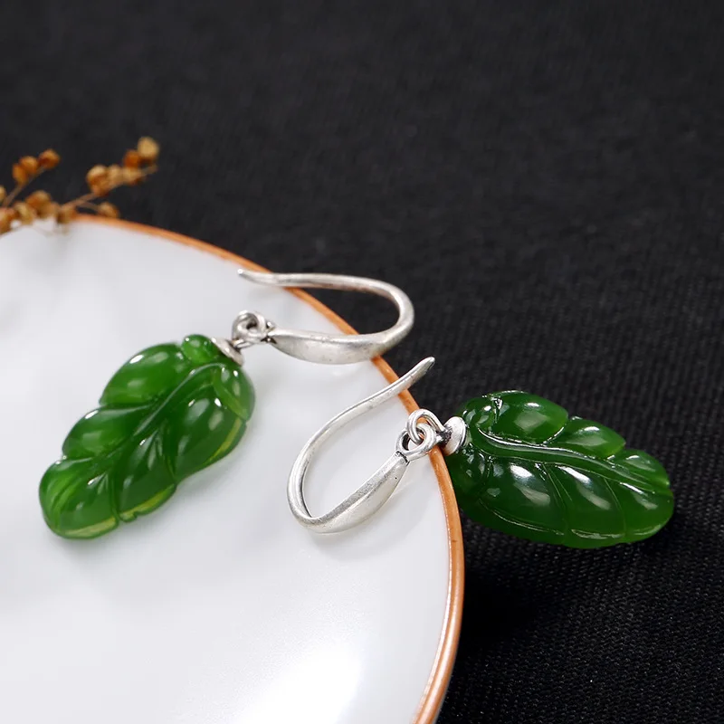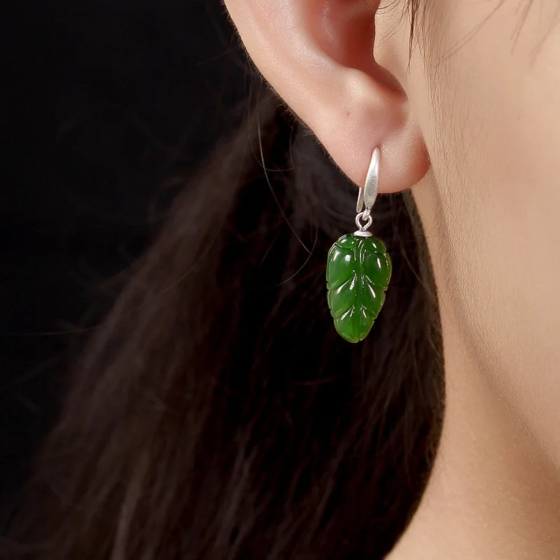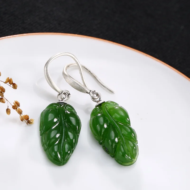 Natural Jasper Green Leaves Earrings 925 Sterling Silver Hook For Women Elegant Vintage Design Fine Jewelry Boucles D'oreilles
