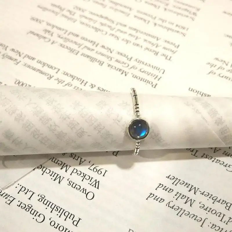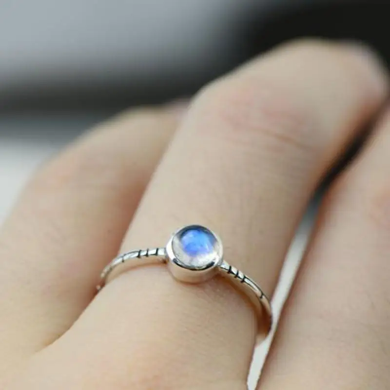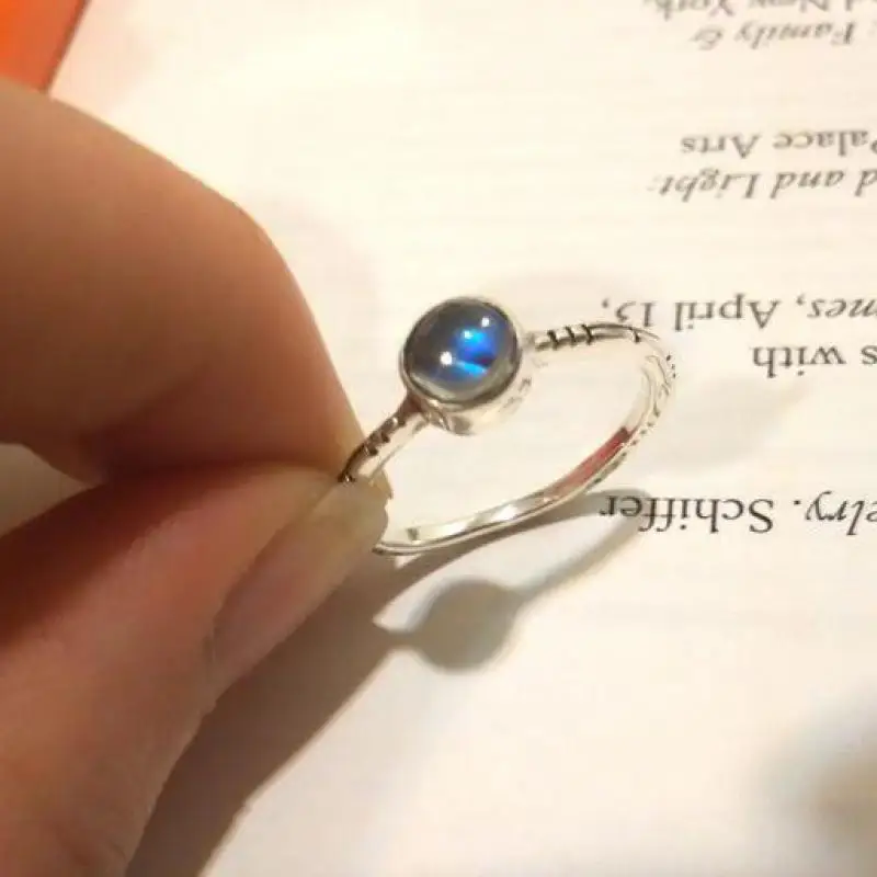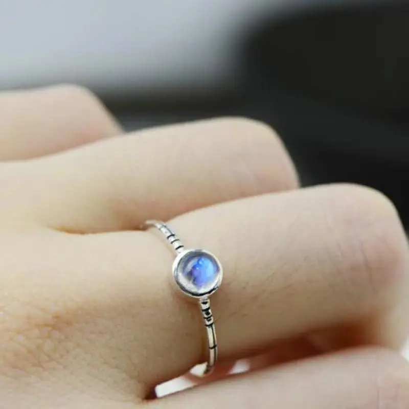 Natural Moonstone Rings For Women Blue Strong Bright 925 Sterling Silver Jewelry Vintage Simple Silver Ring