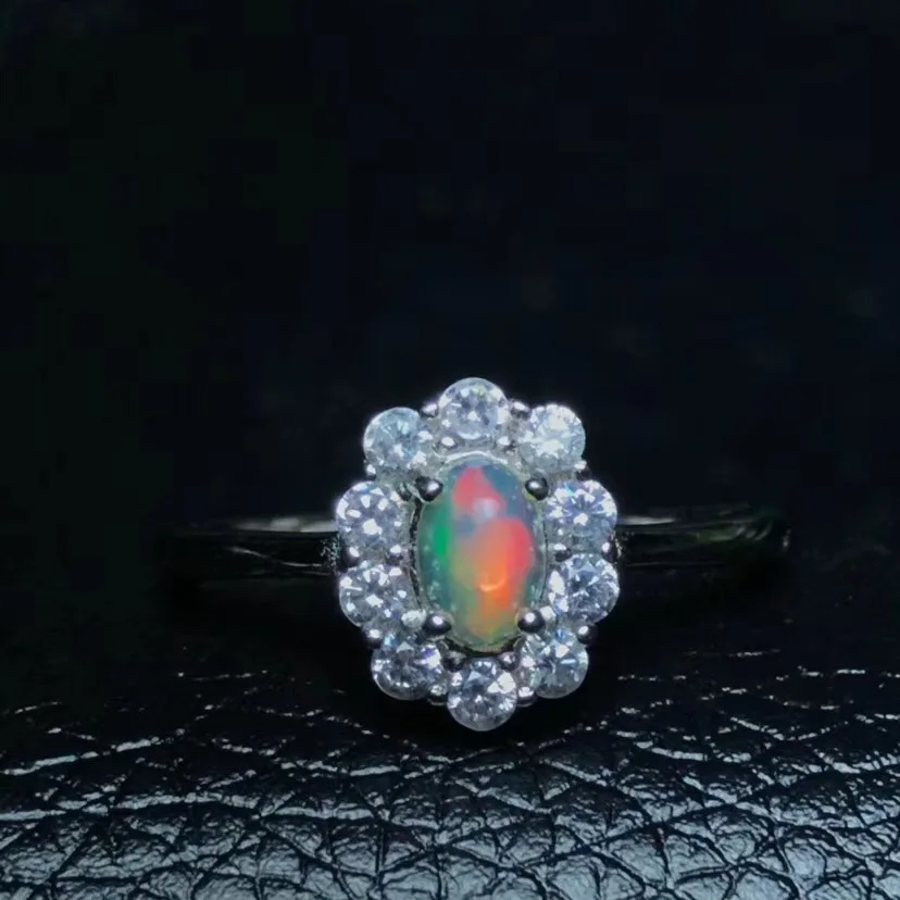 Natural opal woman rings change fire color mysterious 925 silver adjustable size