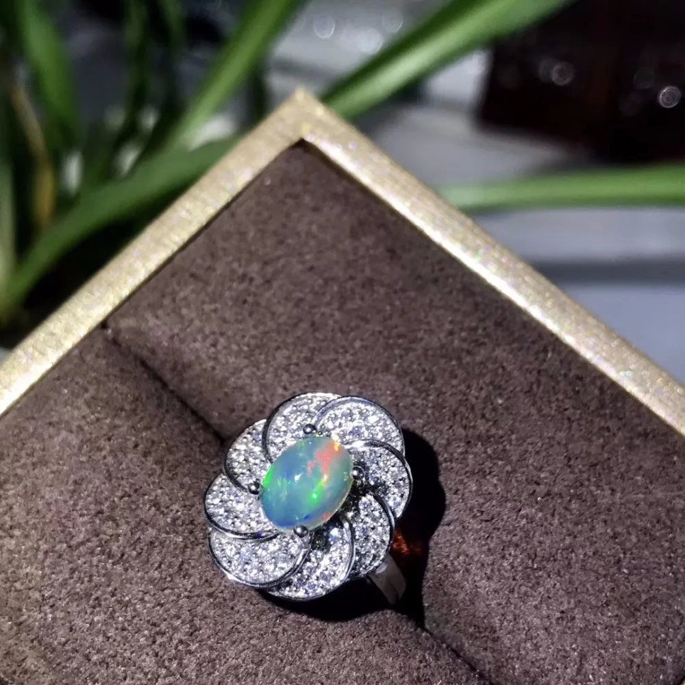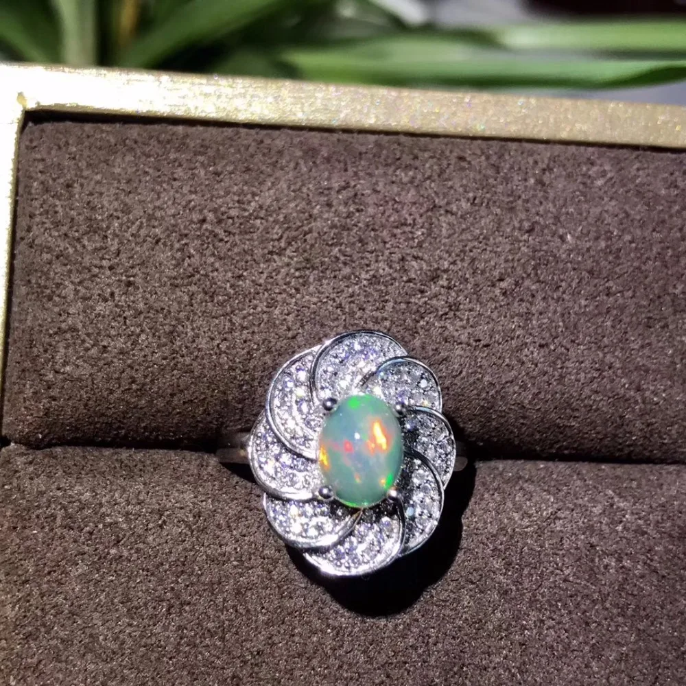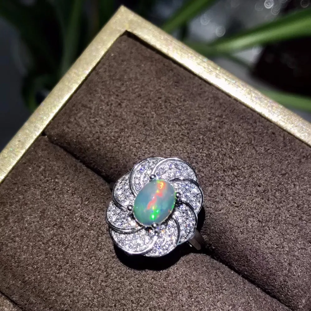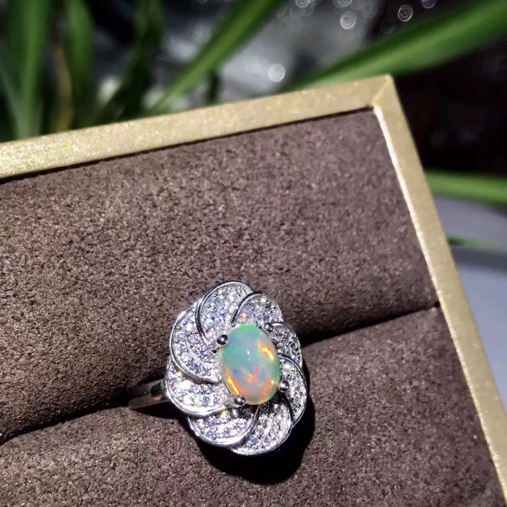 Natural opal woman rings change fire color mysterious 925 silver adjustable size