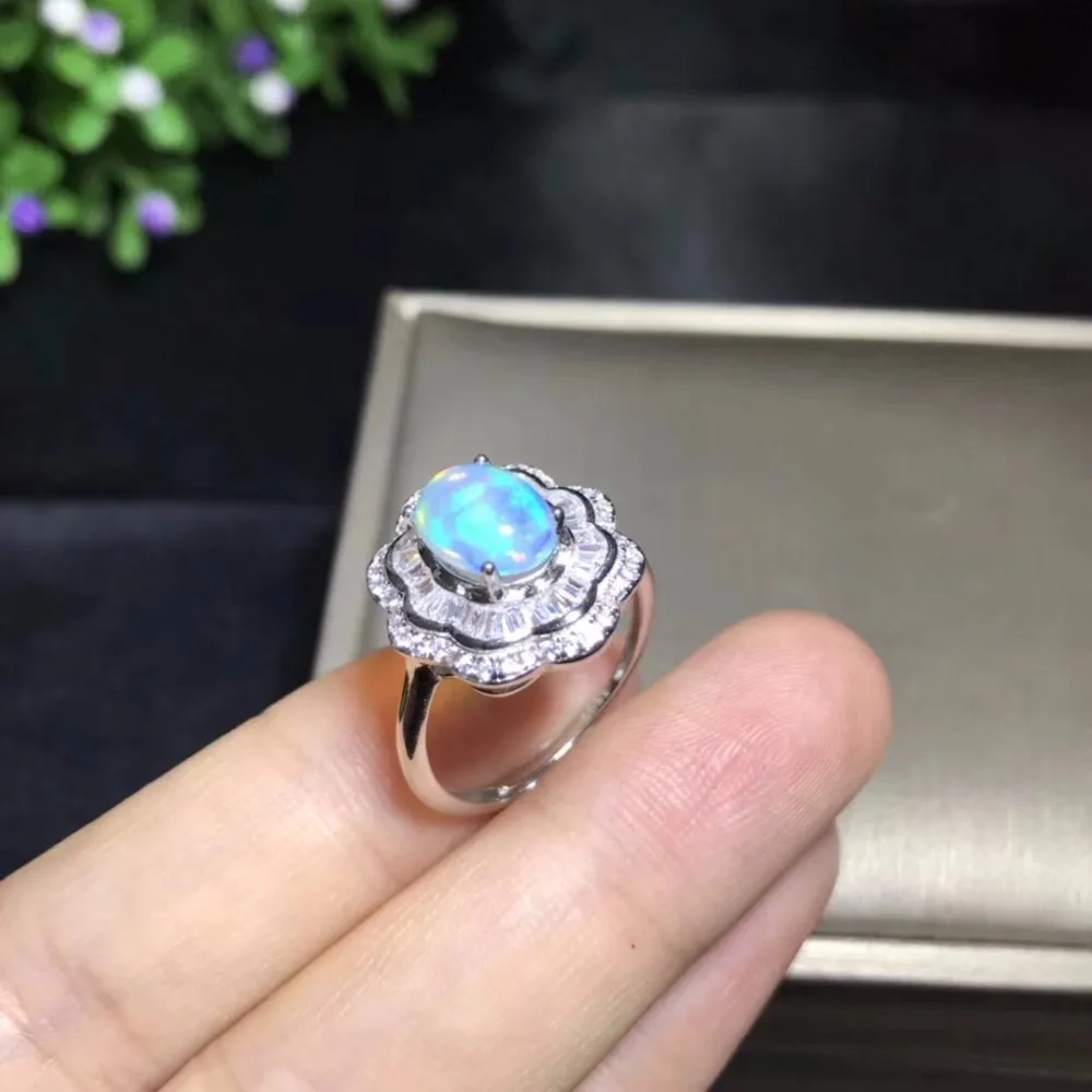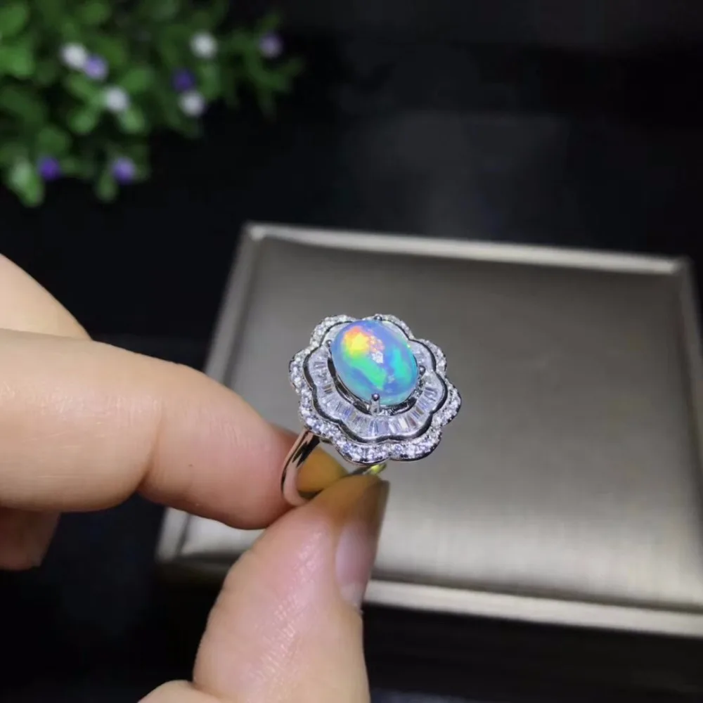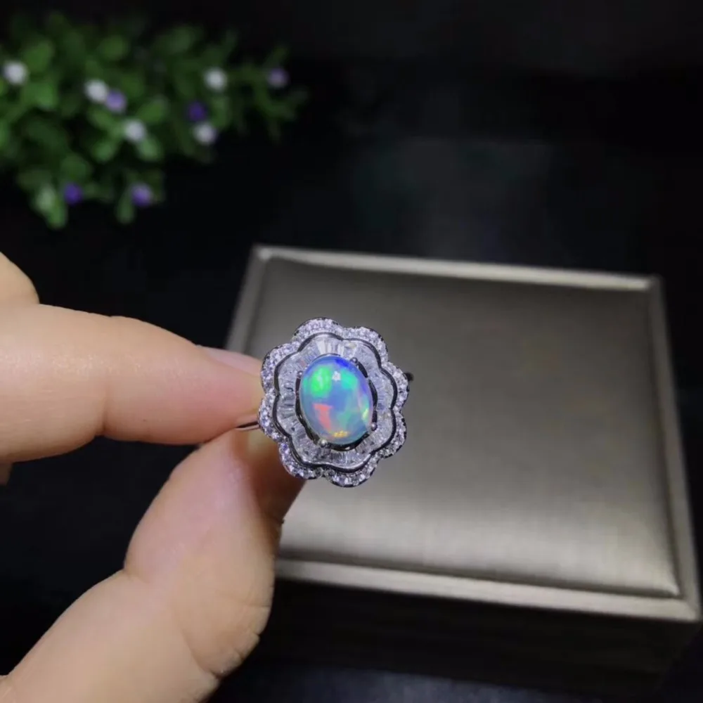 Natural opal woman rings change fire color mysterious 925 silver adjustable size