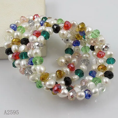 Natural Pearl Crystal Bracelet,AA 8-9MM 5Rows White Pearl Multicolor Crystal Jewellery Wedding Birthd Lady's Gift