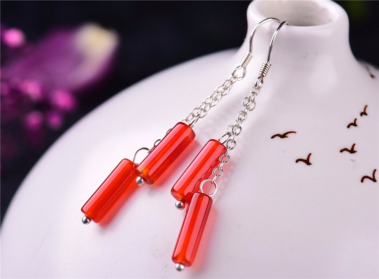Natural red agate long coin retro Earrings classical accessories accessories earrings