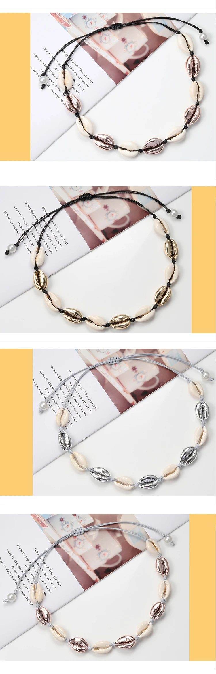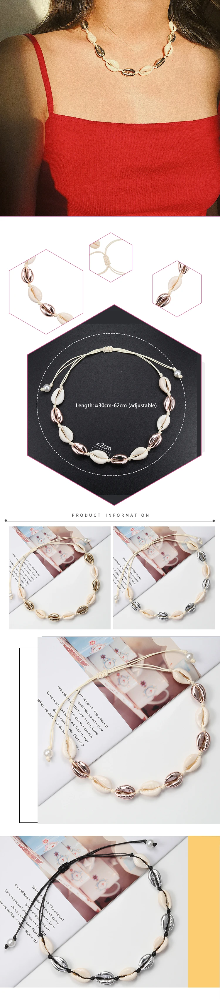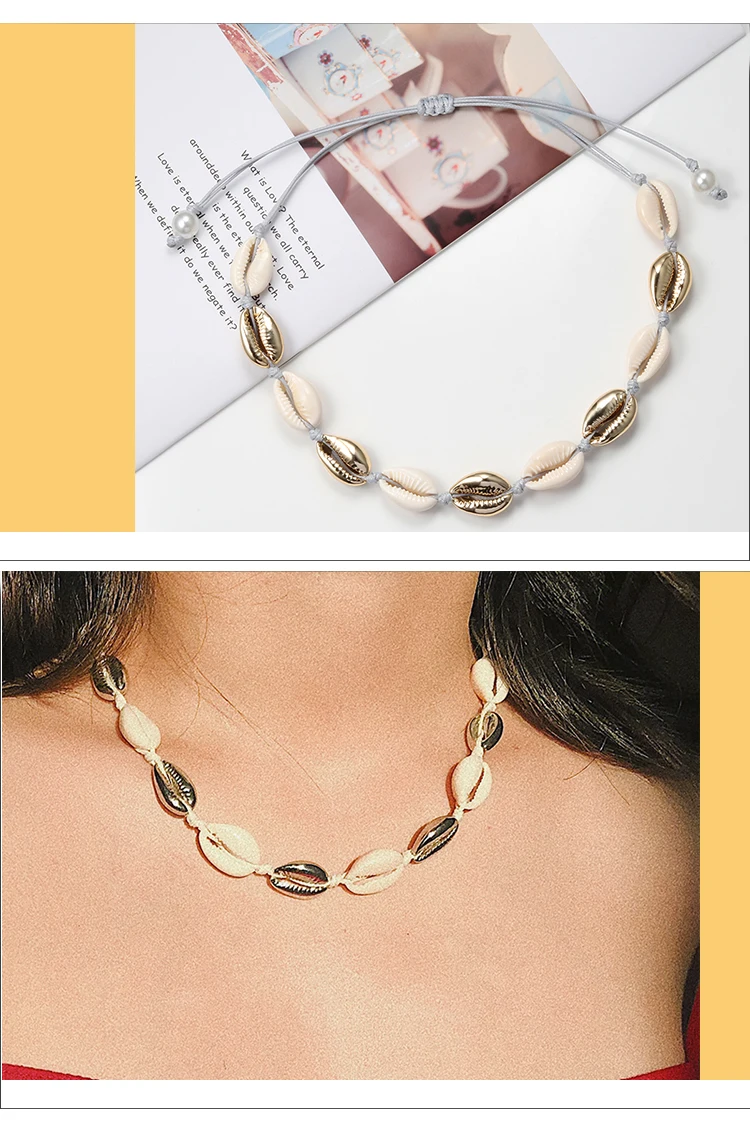 Natural Sea Shell Choker Chain Necklace for Women Bohemian Vintage Beach Conch Shell Braided Jewelry Friend Gift