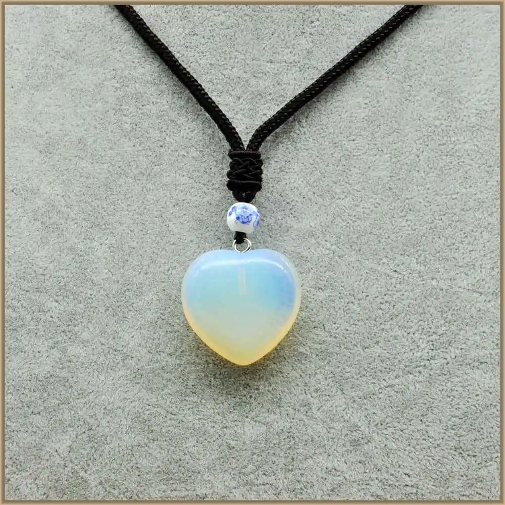 Natural Opalite Gemstones Heart Heart Natural Stone White Crystal Spike Healing Reiki Chakra Pendant Bead Crystal Necklace Women
