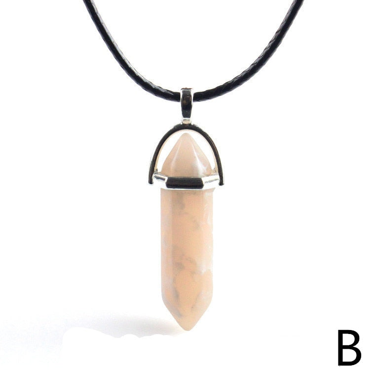 Natural Stone Necklace Hexagonal Column Pendant Natural Crystal Pendants Hexagonal Column Bullet Hexagonal Necklace Women
