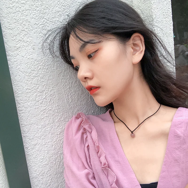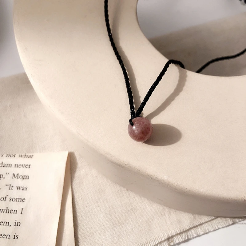 Natural Strawberry Crystal Necklace Women Korean Simple Rope Chain Kawaii Choker Vintage Jewelry