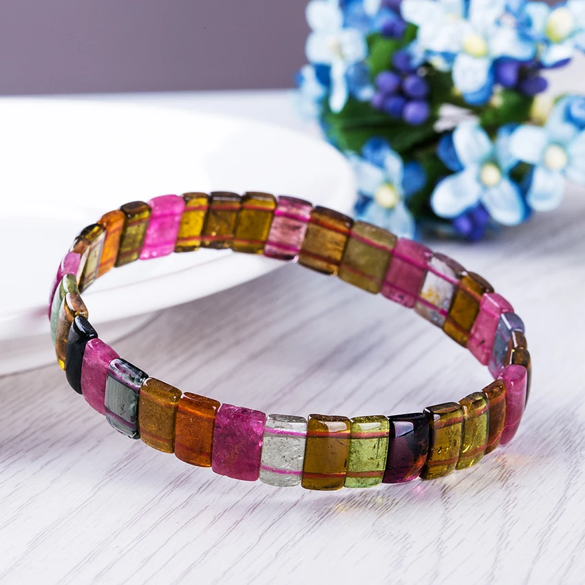 Natural Tourmaline Bracelet For Women 3x5x10mm Colorful Natural Stone Beads Bracelet Women Promote Feelings Couple Bracelets