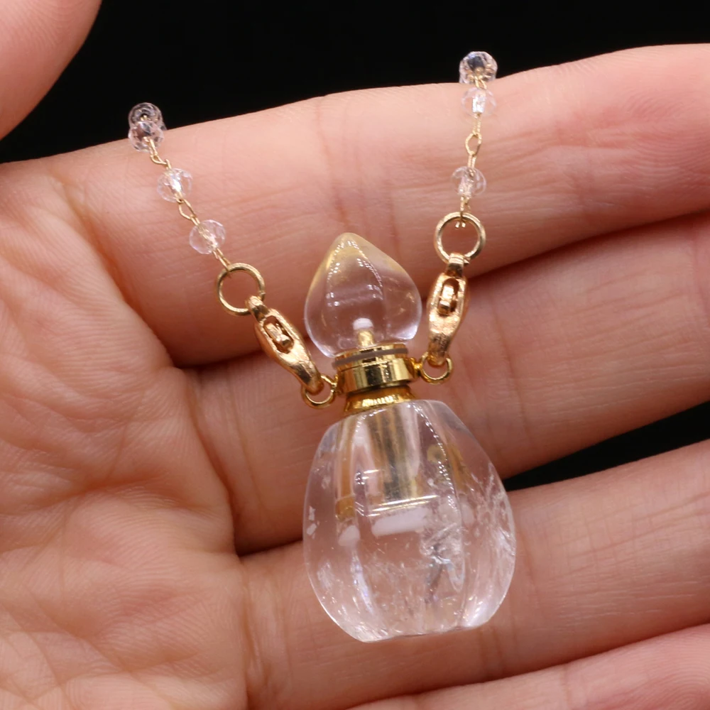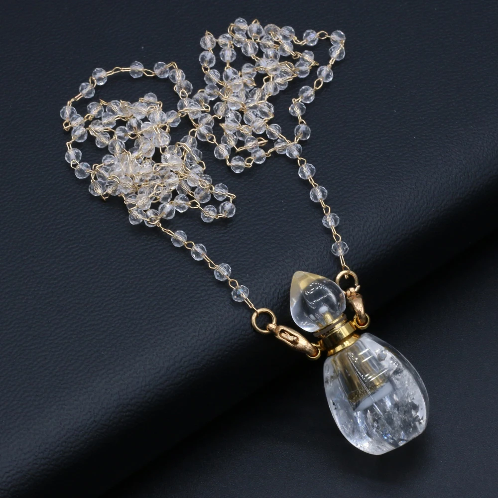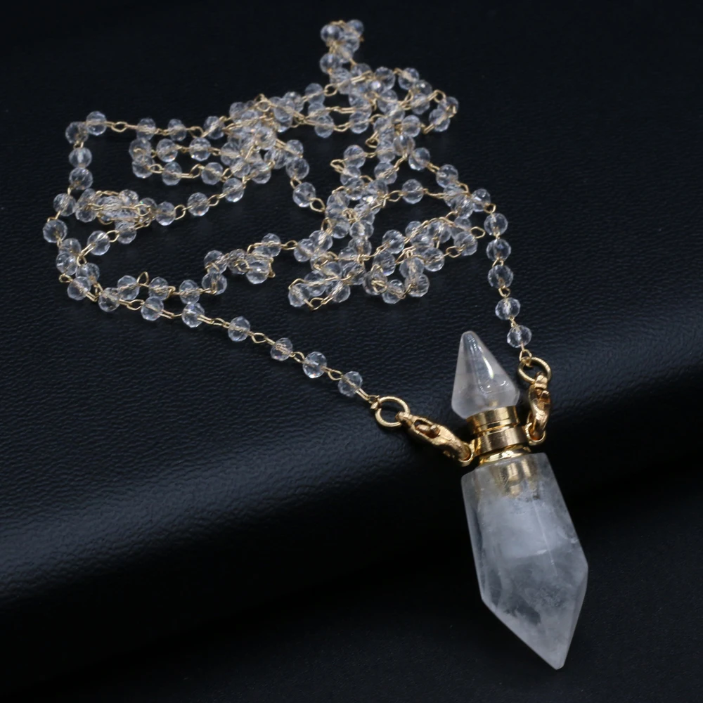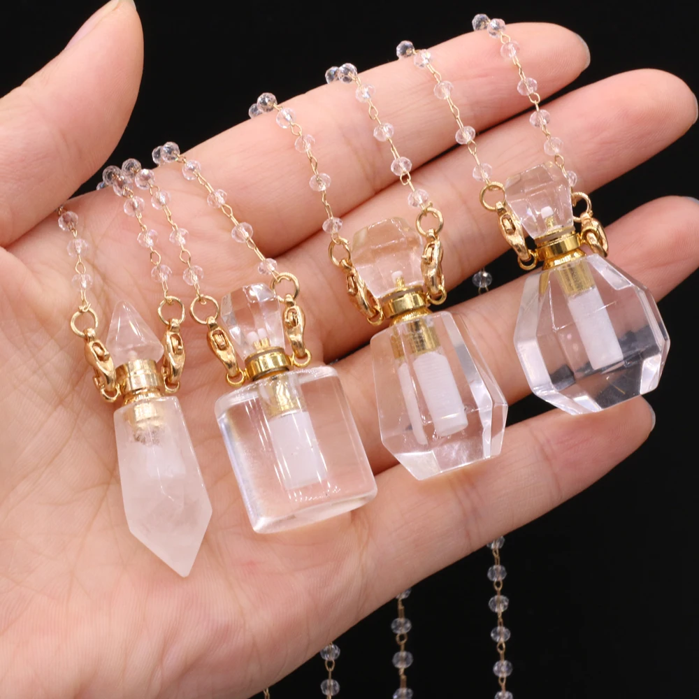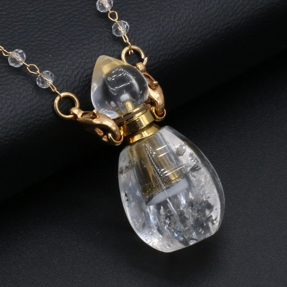 Natural White Crystal Perfume Bottle Pendant Necklace Essential Oil Diffuser Pendant Necklace Quartzs Chain for Jewerly Gift