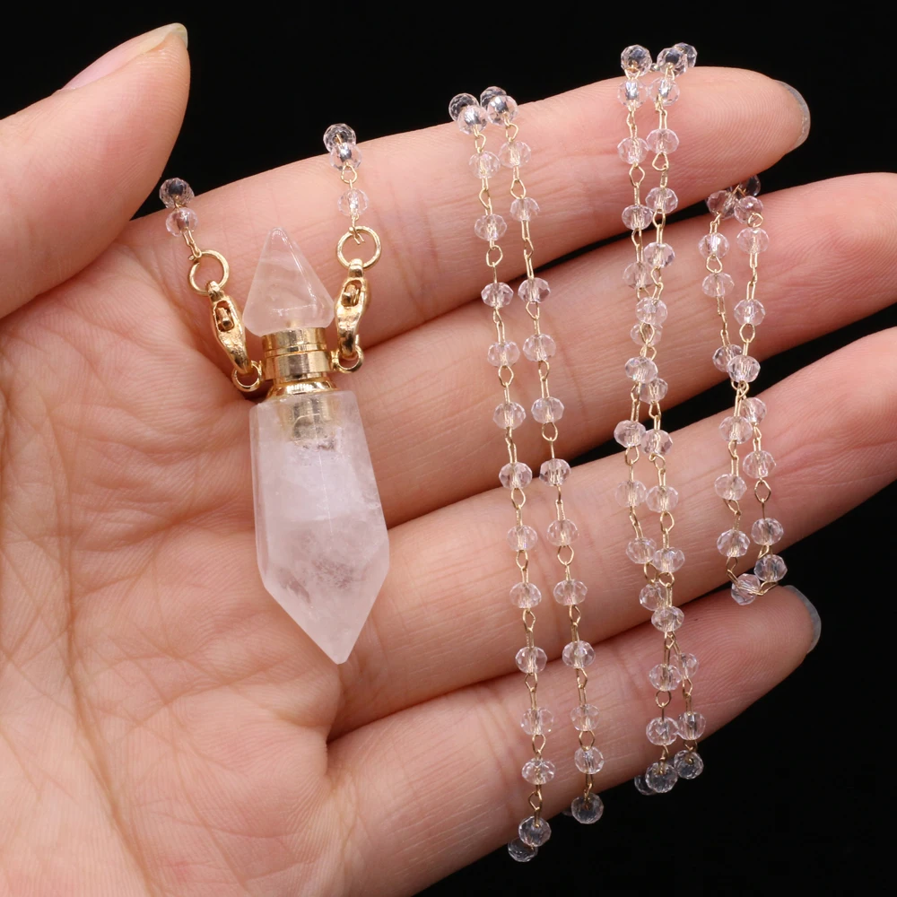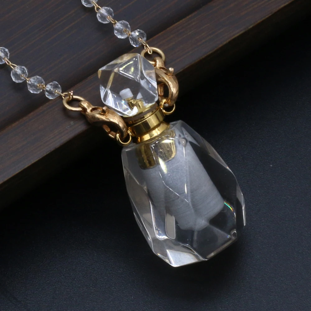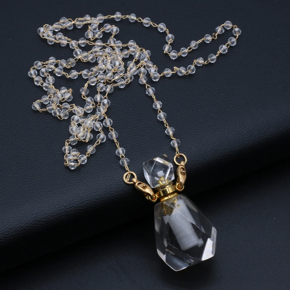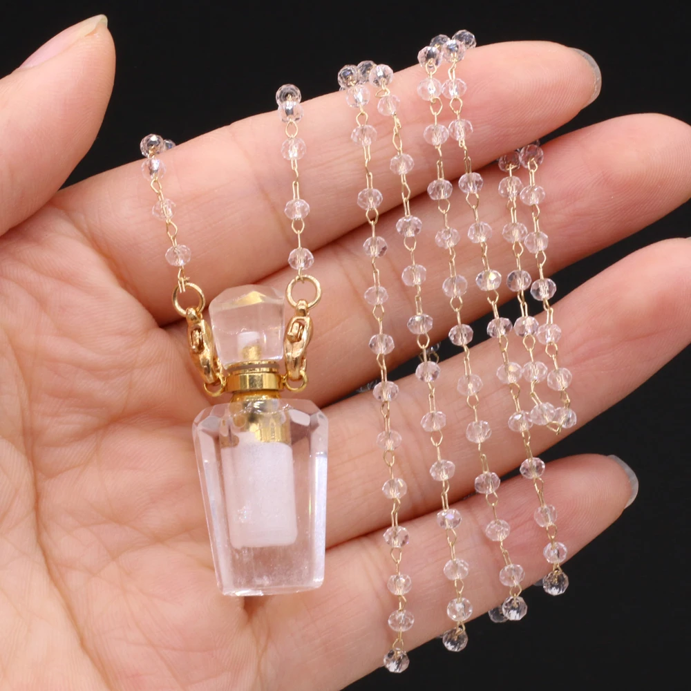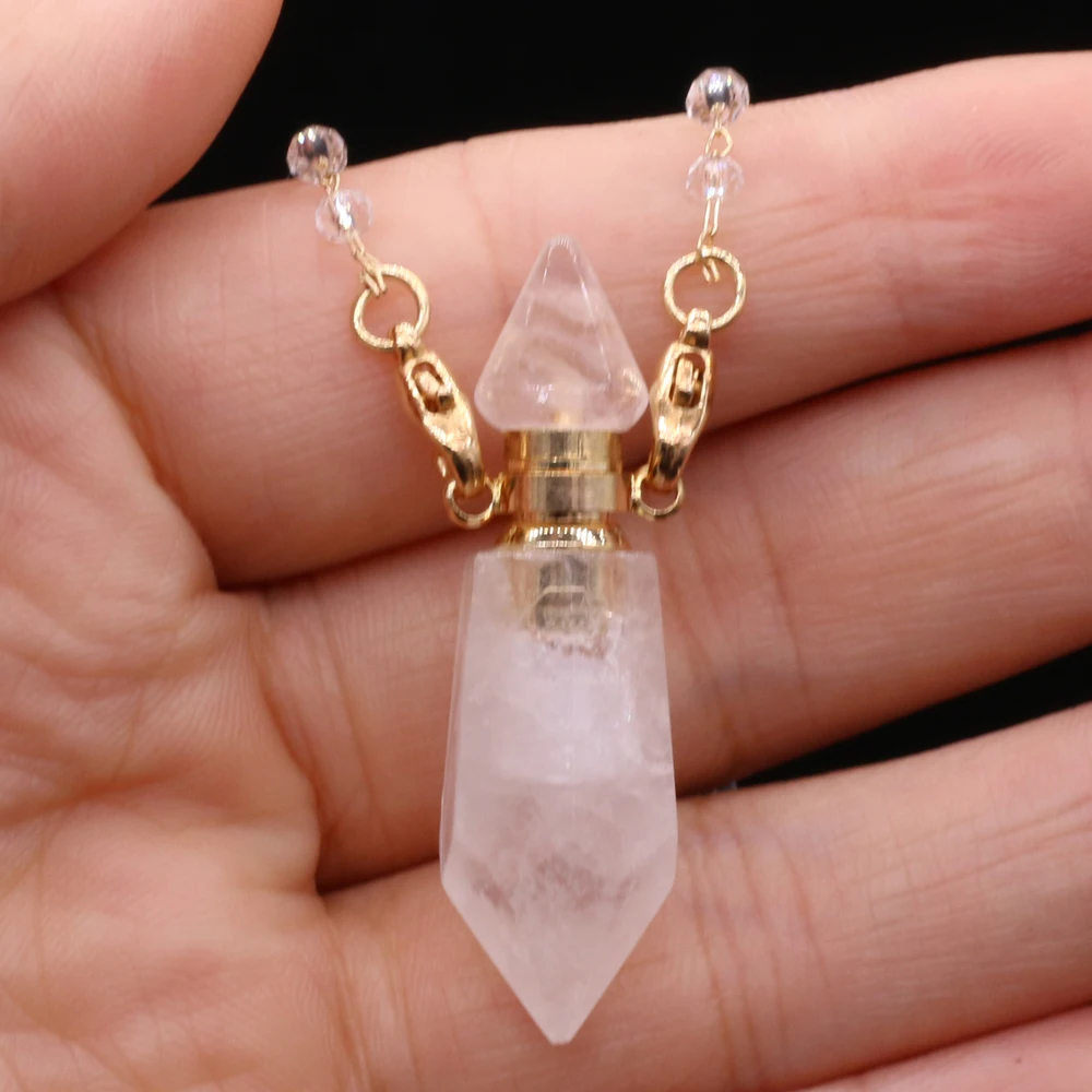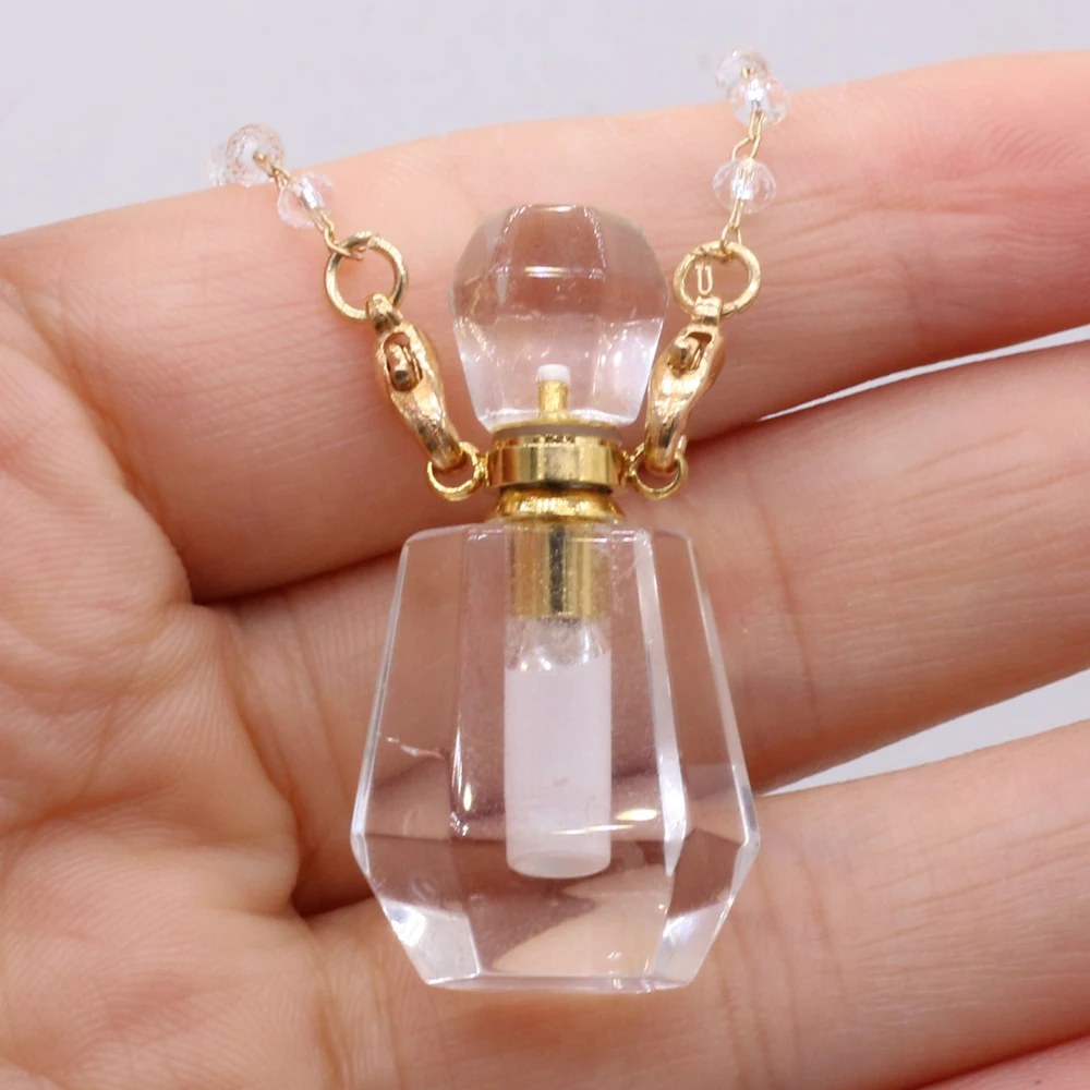 Natural White Crystal Perfume Bottle Pendant Necklace Essential Oil Diffuser Pendant Necklace Quartzs Chain for Jewerly Gift