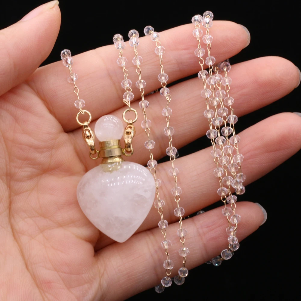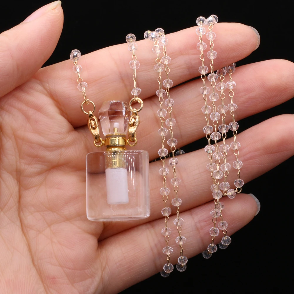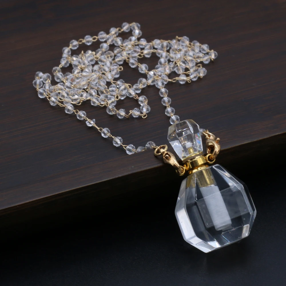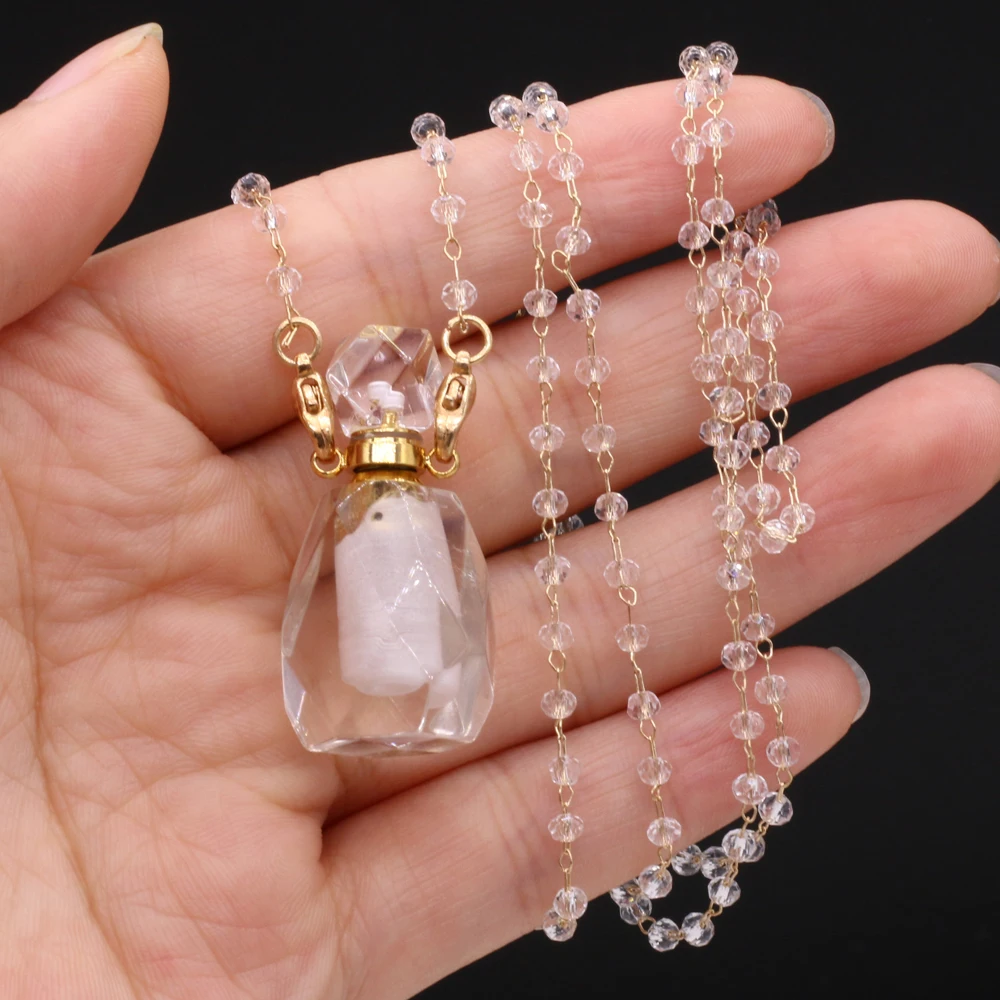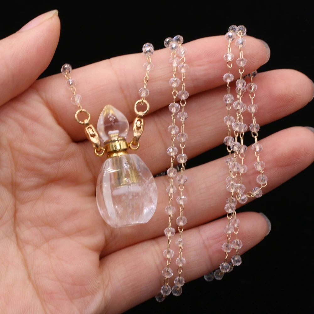 Natural White Crystal Perfume Bottle Pendant Necklace Essential Oil Diffuser Pendant Necklace Quartzs Chain for Jewerly Gift