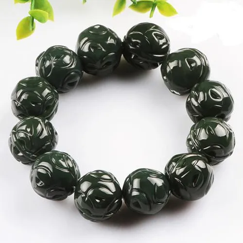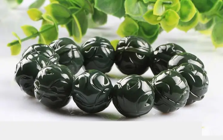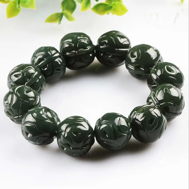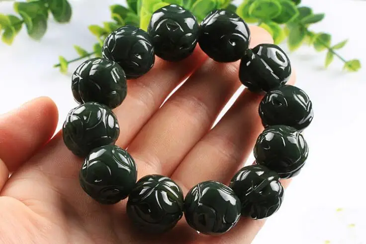 Natural XinJiang hetian jade QingYu walnut catenary stone Lucky Stretch Elastic Bracelet Fashion Jewelry