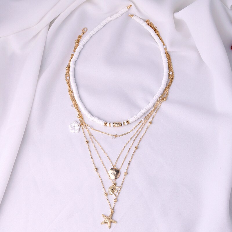 Necklace for Women Antique Round Soft Pottery Elephant Clavicle Chain Flower Starfish Multilayer Necklace Jewelry