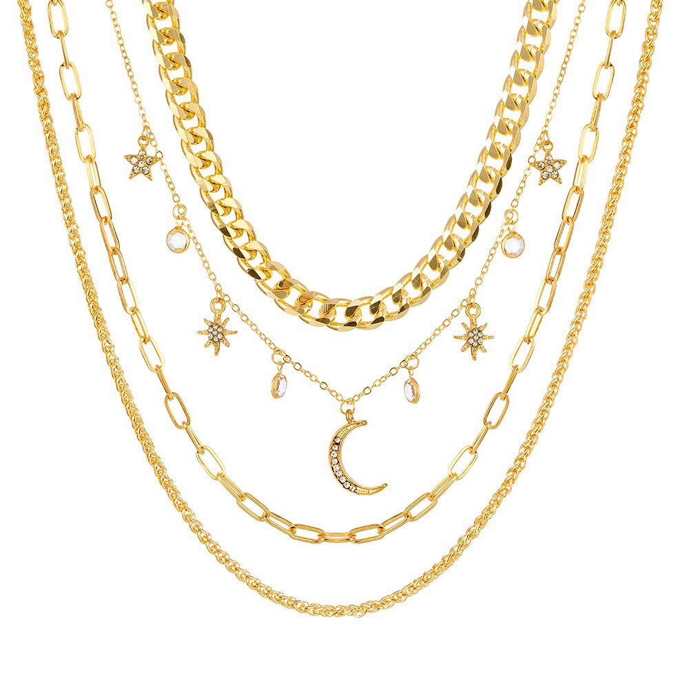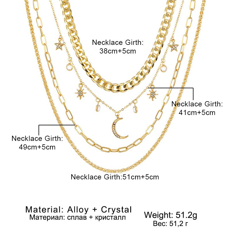 Necklace for Women Retro Moon Star Crystal Multi-layer Pendant Chain Necklace Jewelry Accessories