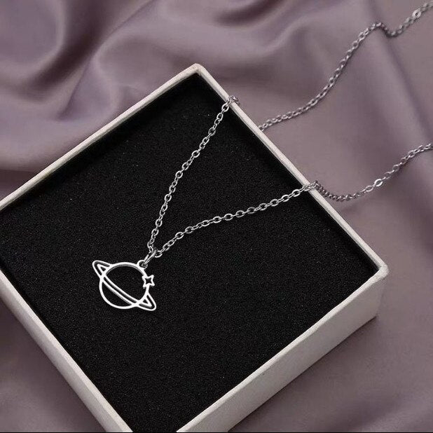 Necklace Layered Retro Hip Hop Saturn Aesthetic Kpop Pendant Designer Jewelry Couple Trend Girl Store Gift For Women Vintage2021