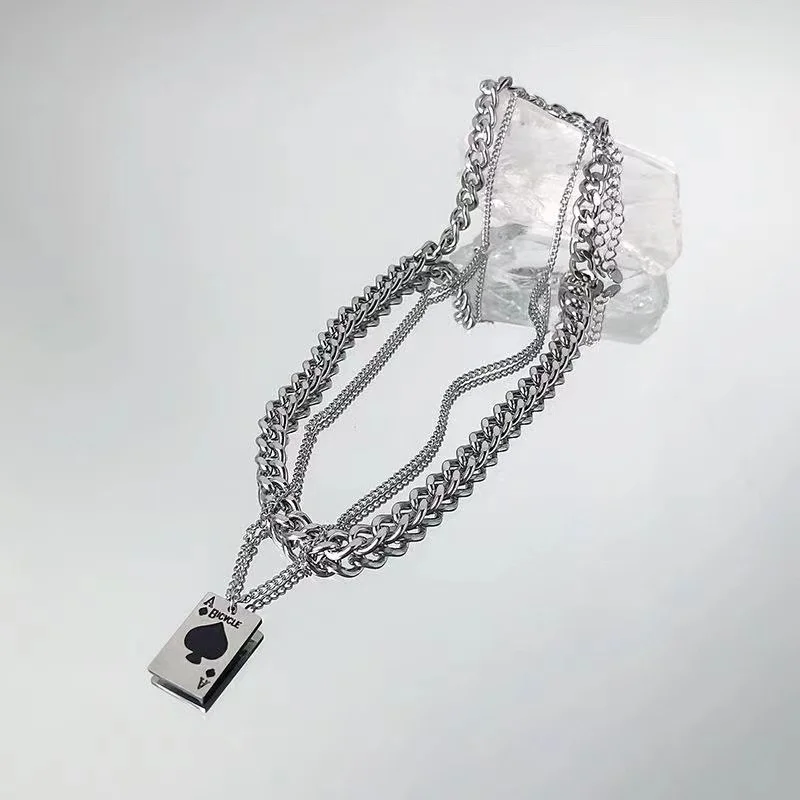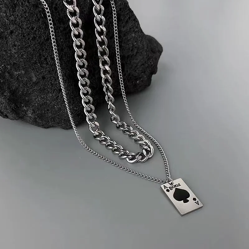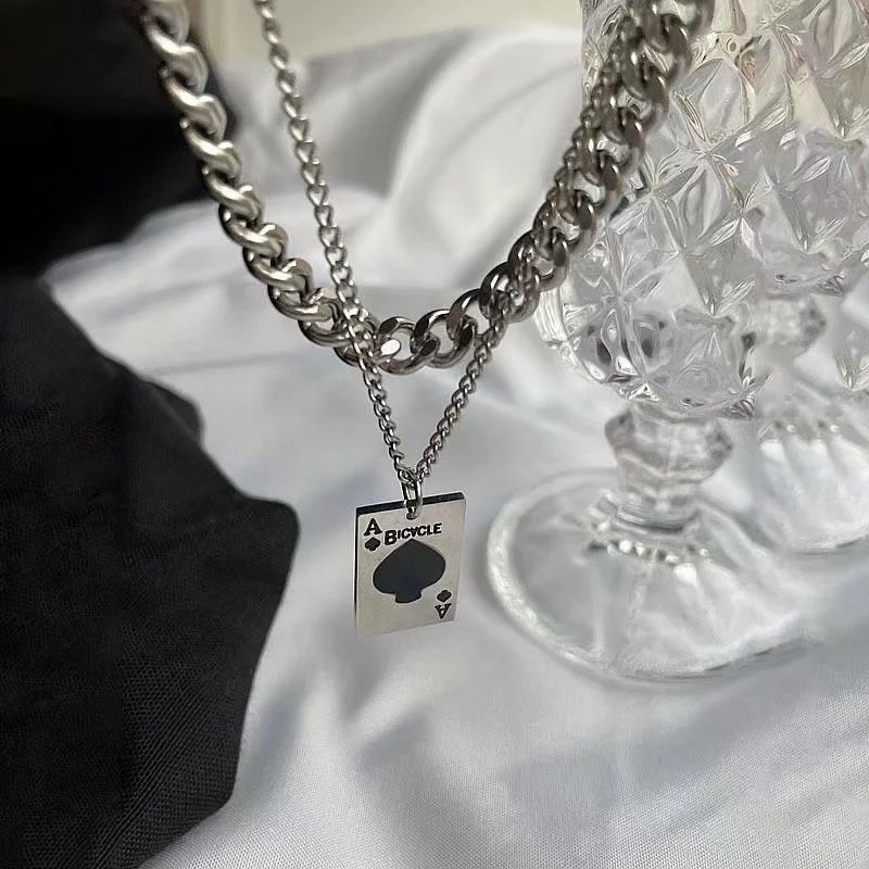 Necklace Personalized Titanium Playing Card Pendant Men's and Women's Spade A Hip Hop Accessories are Popular