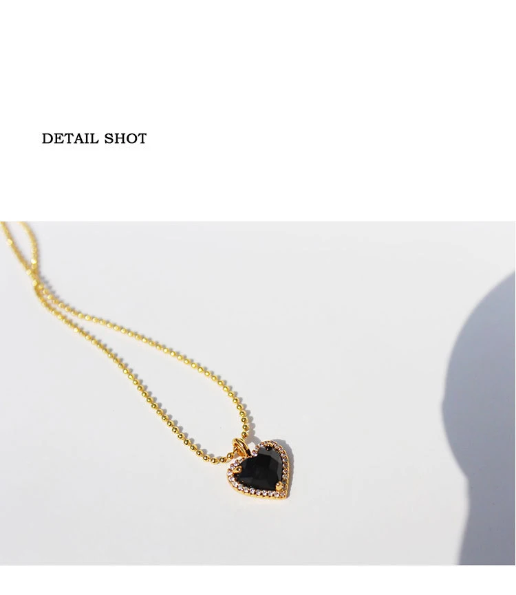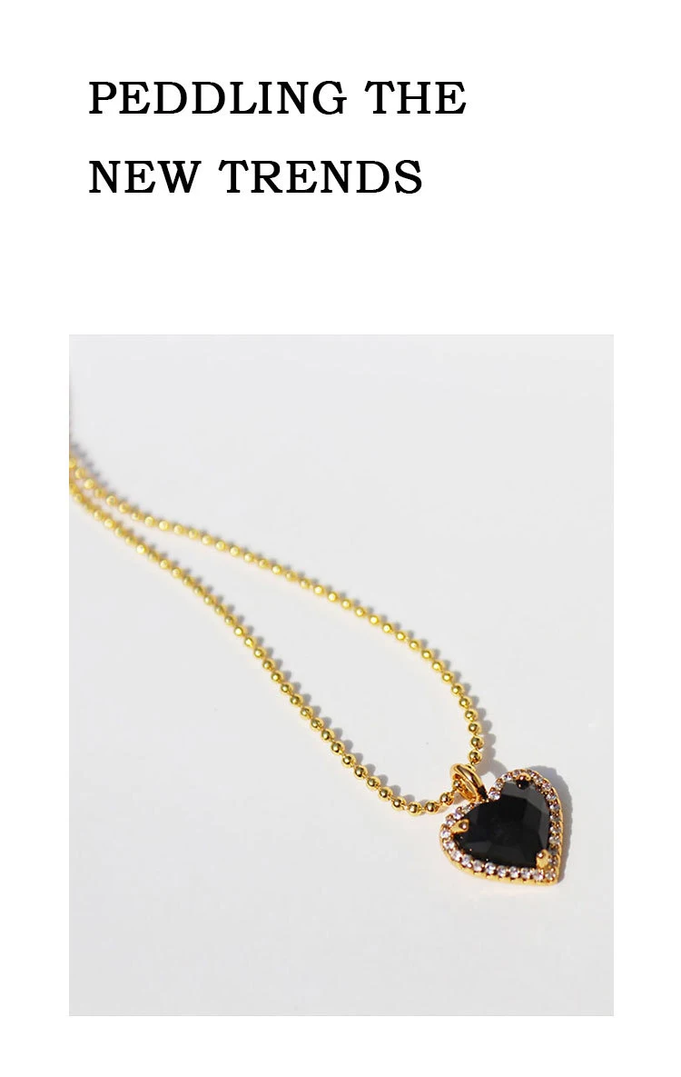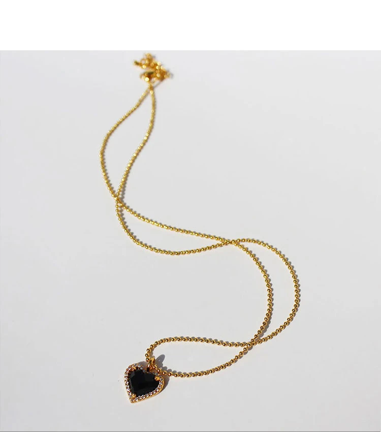 Necklaces for Women Neck Chain Female Jewelry Gift Vintage Black Heart Zircon Crystal Beads Pendant
