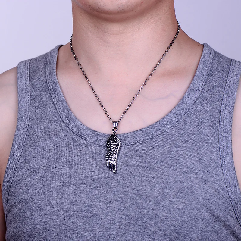 Necklaces Men Wing Stainless Steel Pendants Hip Hop Necklace Chaingifts Men 2021 Women Accessories Feather Pendant