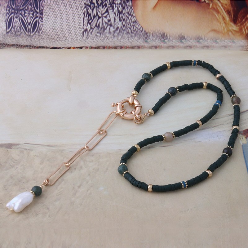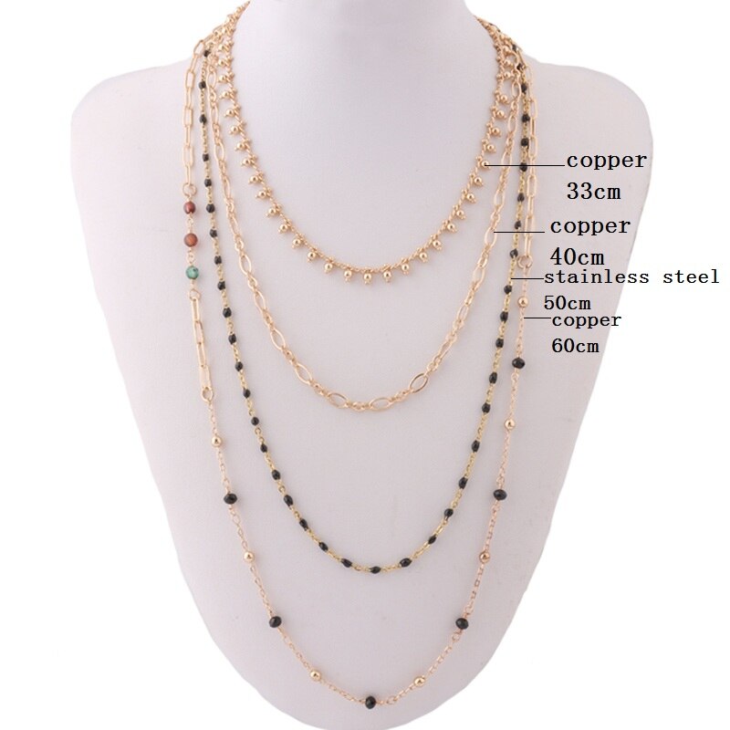 NeeFu WoFu Multi-layer set necklace Nationality Natural stone short necklace Bohemia Stainless steel jewelry wholesa