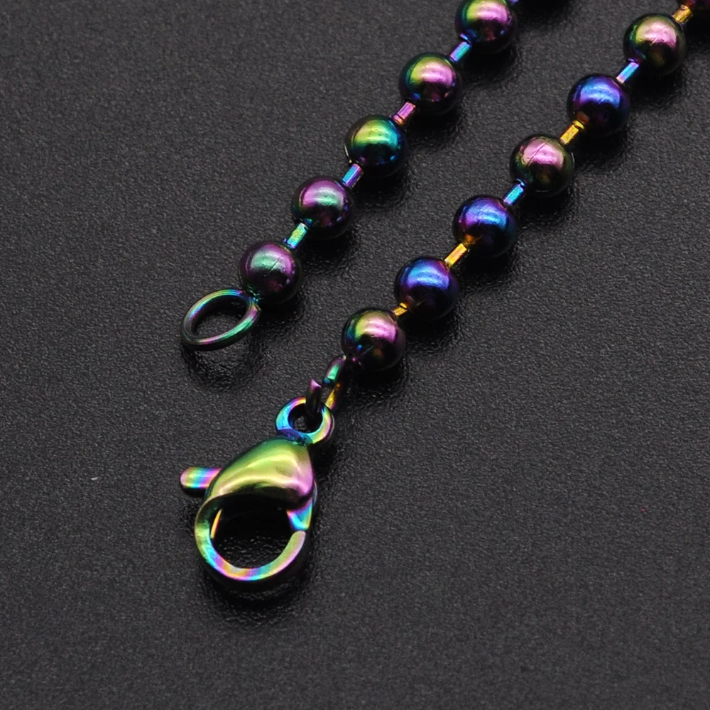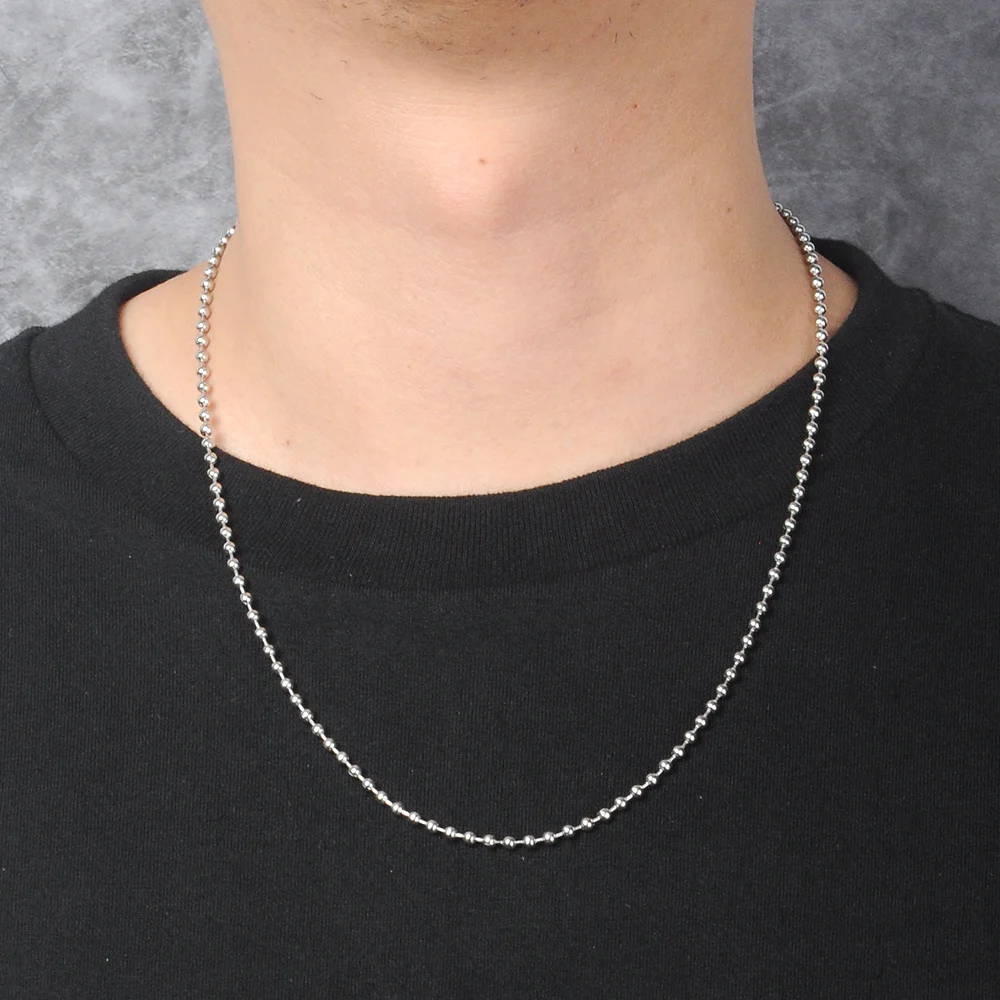 Never Fade 3mm 100% 316L Stainless Steel Hip Hop Bead Ball Necklace 7BEADS Women Men Rapper Jewelry Basic Chains