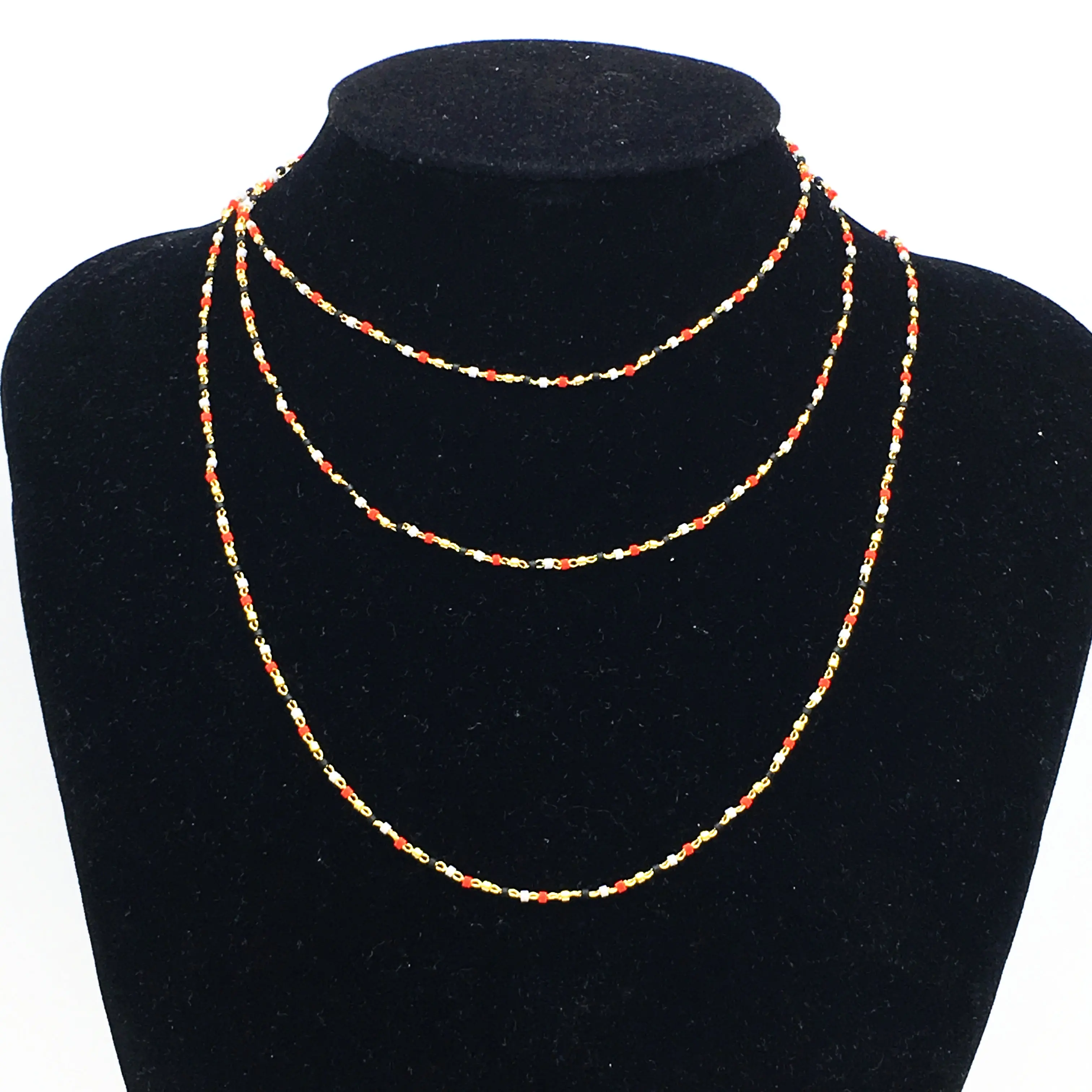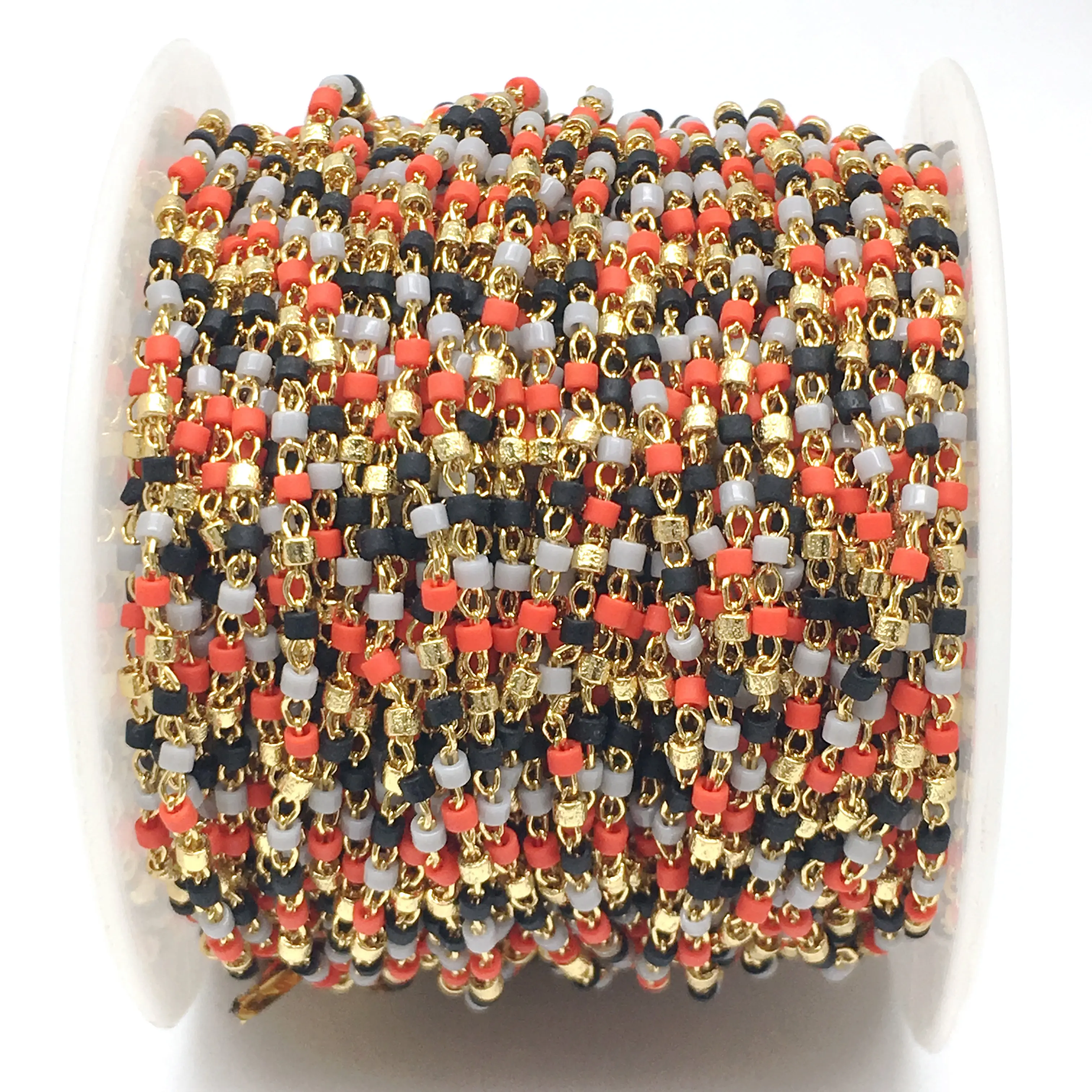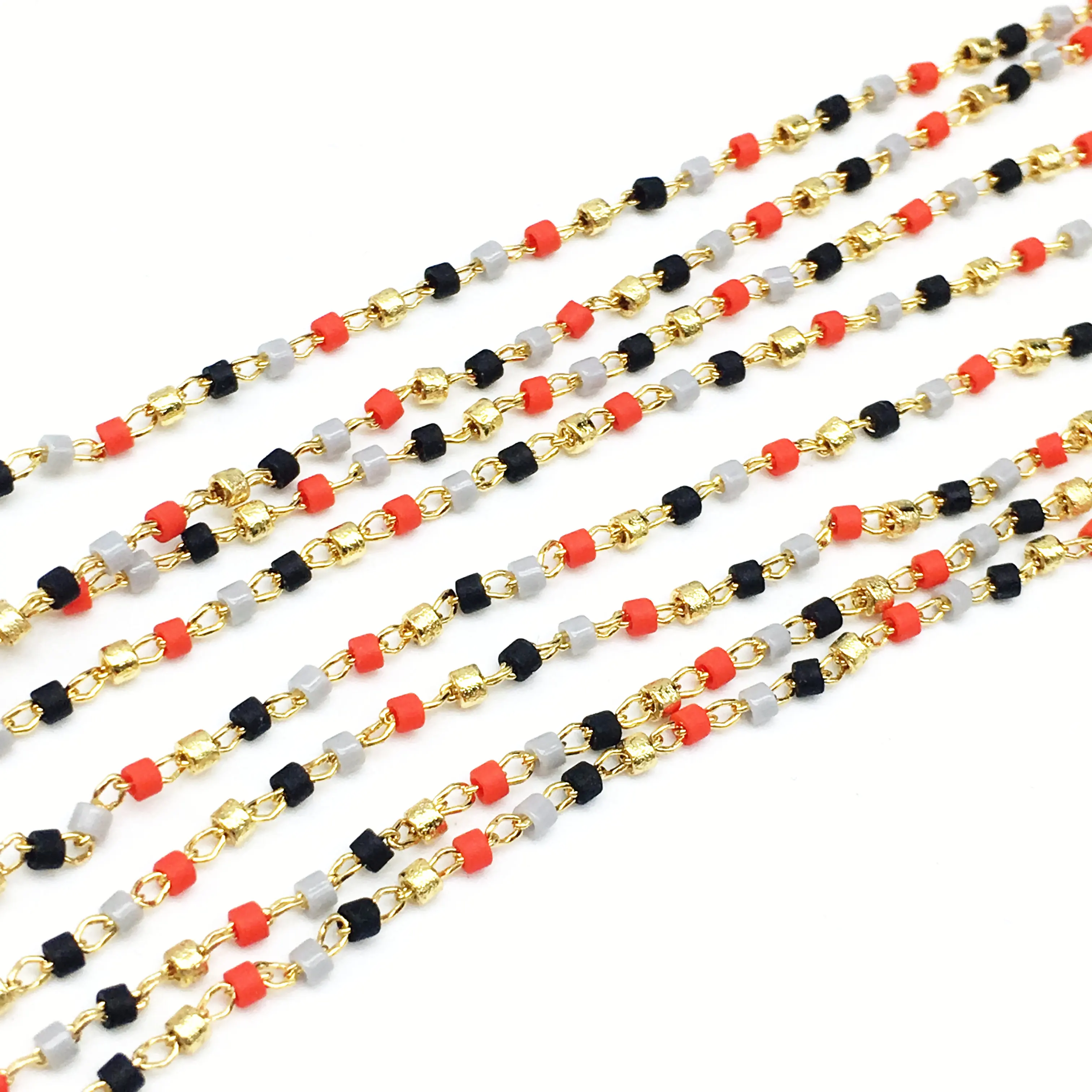 NEW! 5meter Multi-color Brass Gold Wire Wrapped Cylinder Necklace choker, Colorful Japanese Seed Beads Tiny Rosary Chain