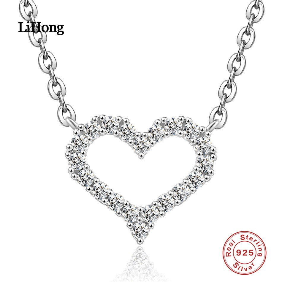 New 925 Sterling Silver Necklace Luxury Heart Pendant AAA Zircons For Women Charm Jewelry
