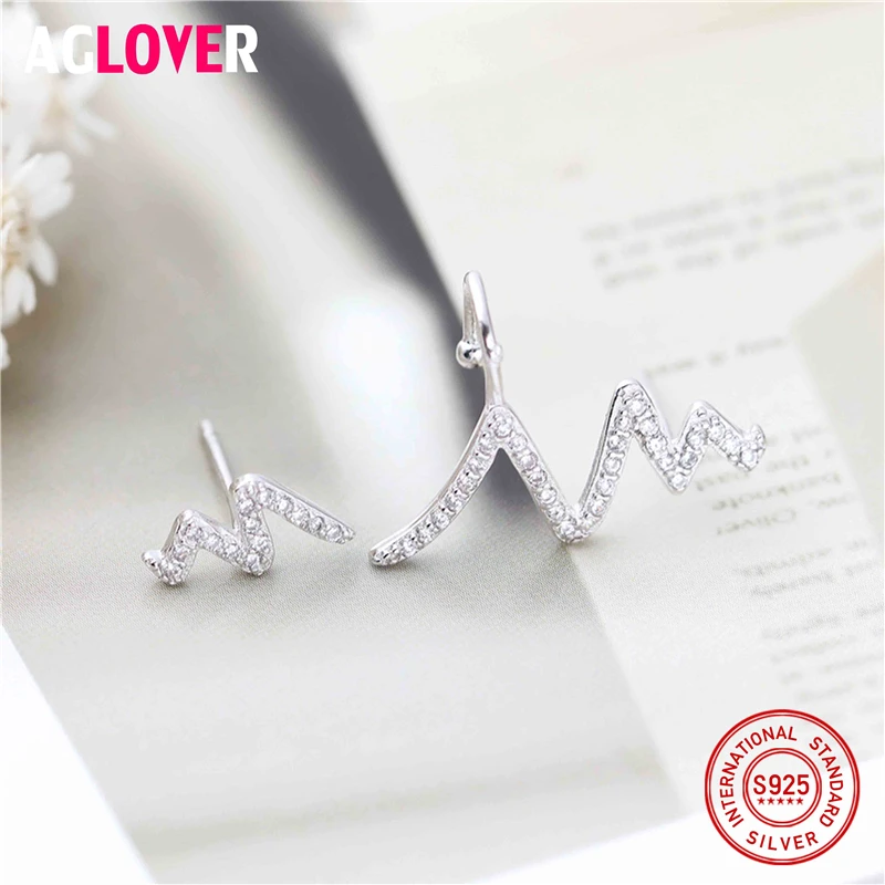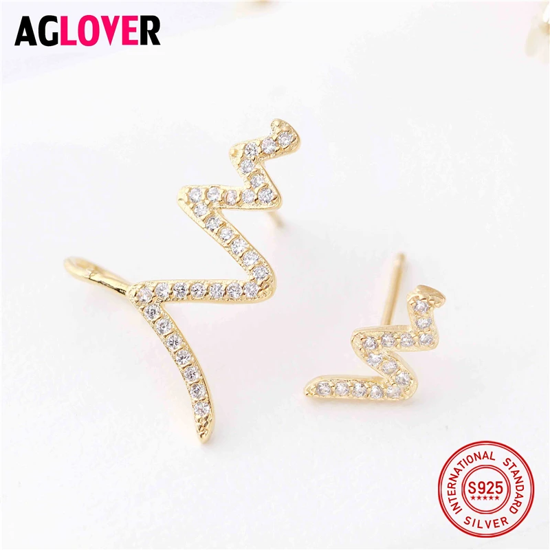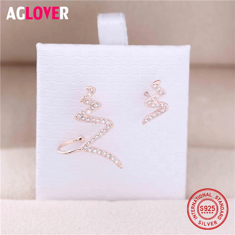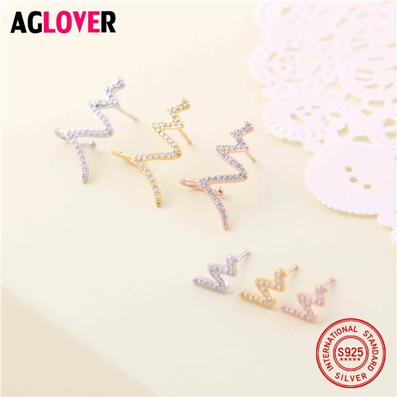New Arrival 100% 925 Sterling Silver Exquisite Lightning Inlaid With Full Clear Zircon Stud Earrings for Women Fine Jewelry