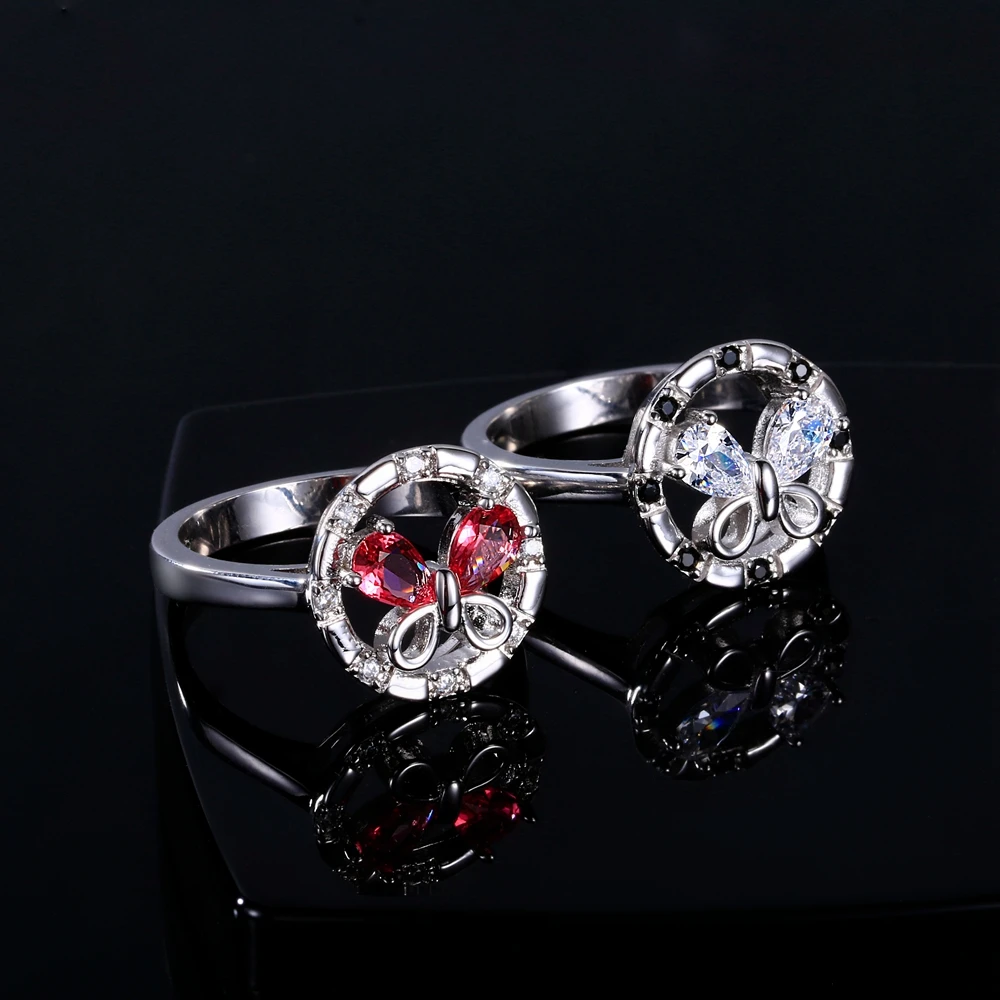 New Arrival Silver 925 Jewelry Rings for Women High Quality Red Zircon butterfly ring Anniversary gift Luxury Jewelry
