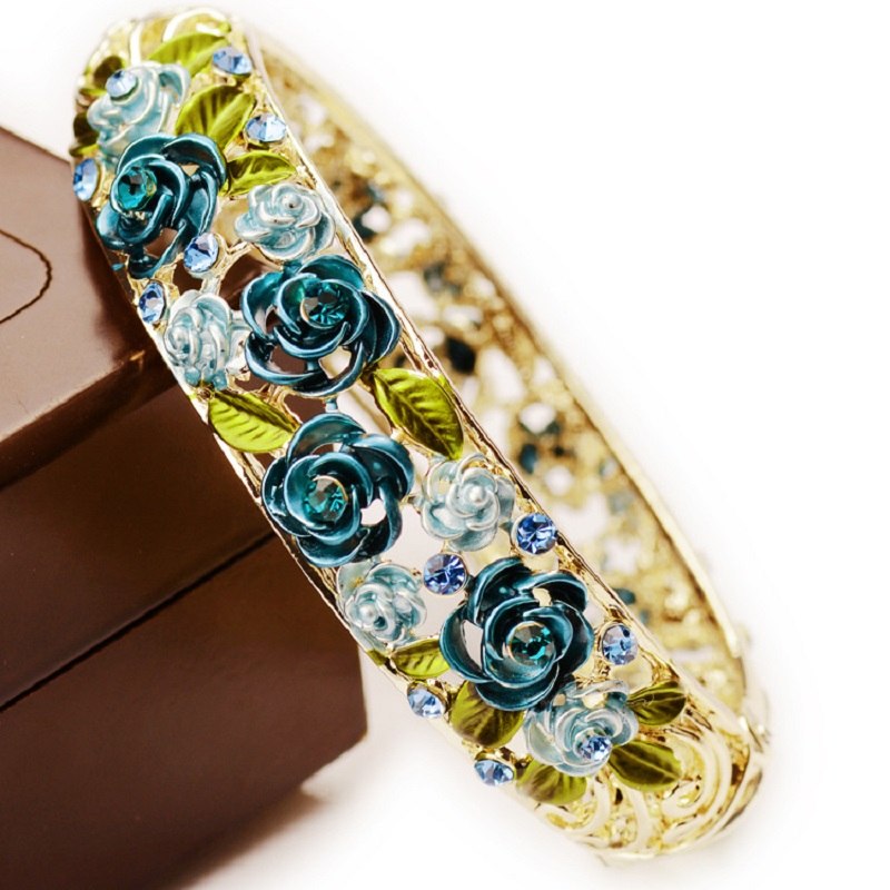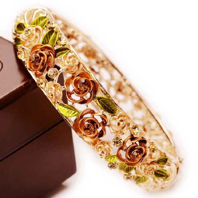 New Fashion Retro Design Rose Styling Crystal Bangle Charm Women Wedding Engagement Jewelry Exquisite Gift Accessory