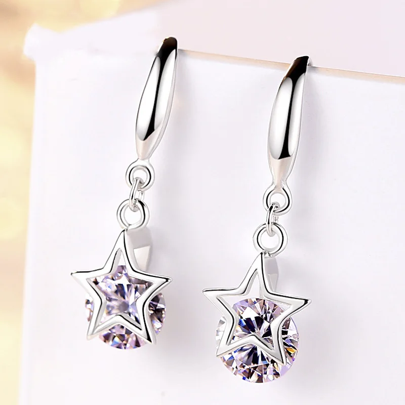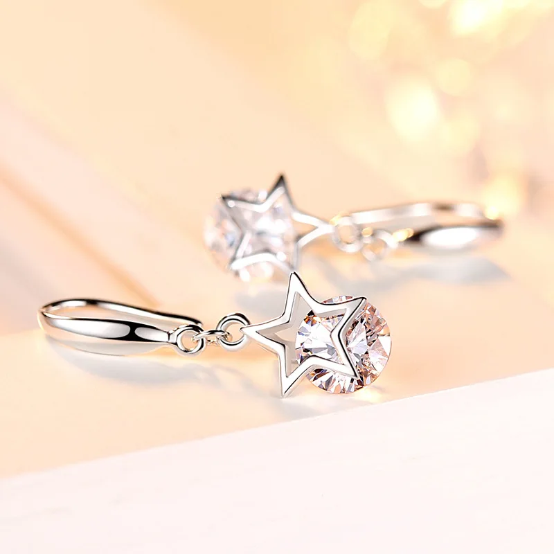 New Fashion Simple Design S925 Silver Crystal Para Earrings Charm Women Party Wedding Jewelry Gift Accessory