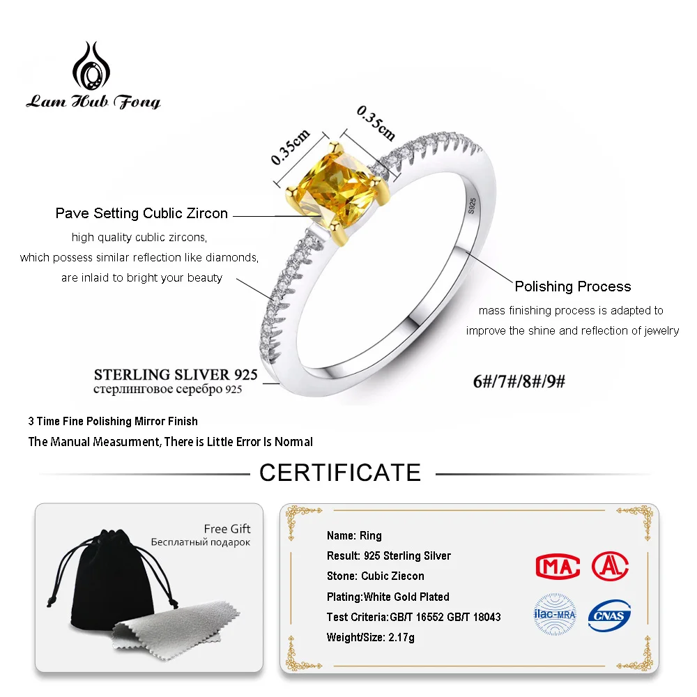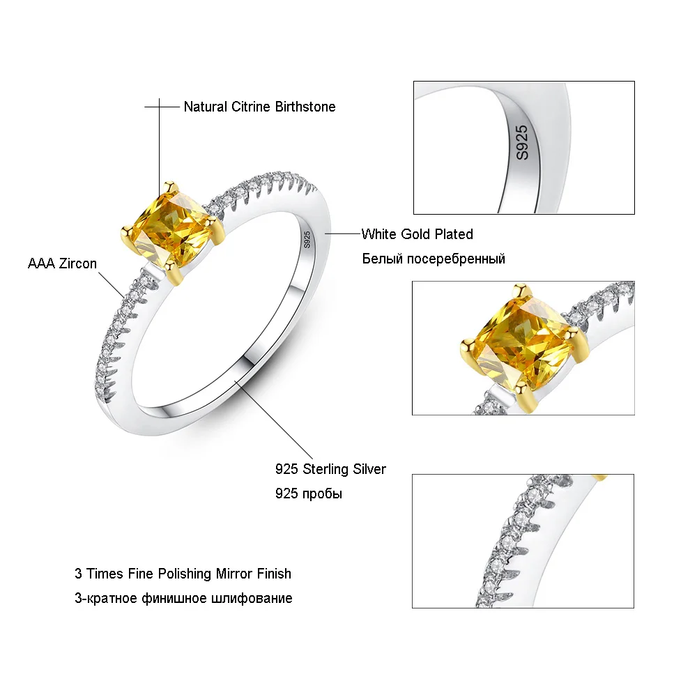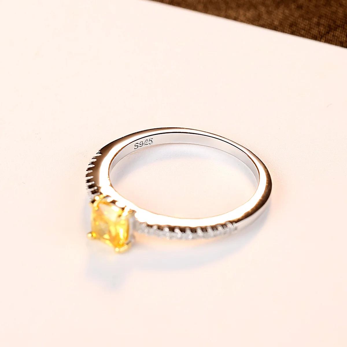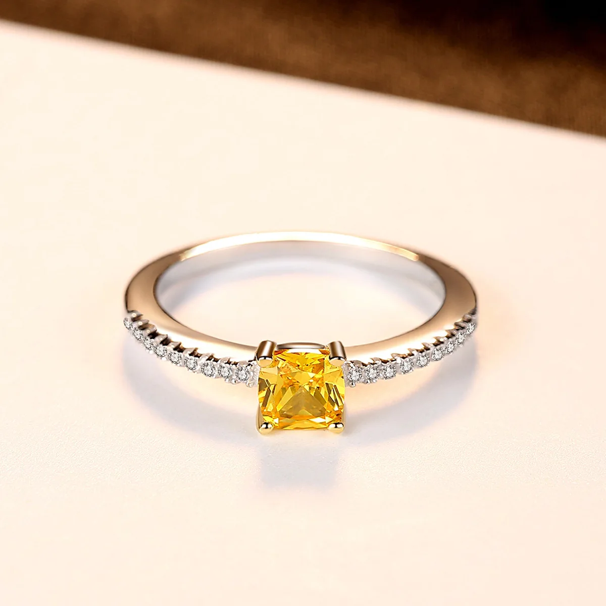 New Lady Luxury Square Natural Citrine Ring Birthstone Solitaire Ring Genuine 925 Sterling Silver Fine Jewelry For Women