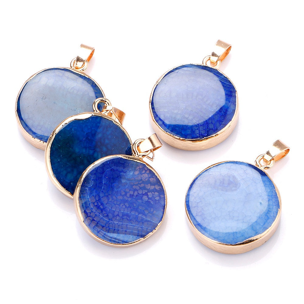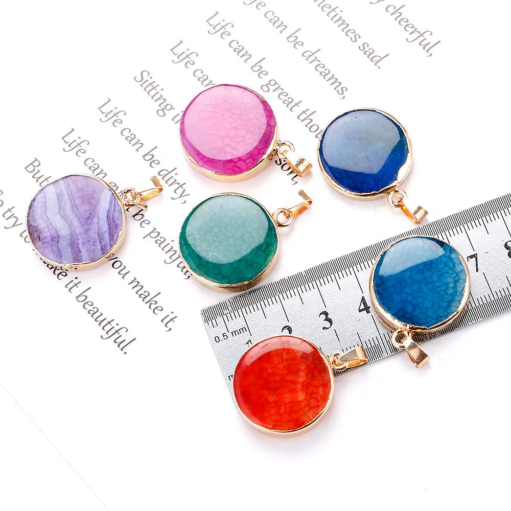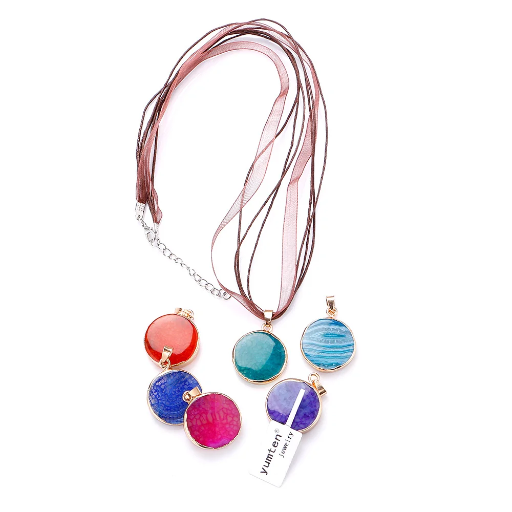 New Mode Natural Purple Crystal Round Pendant Necklace Quartz Stone Druzy Woman's Popular Fine Jewelry Gift Multi-Color Stone