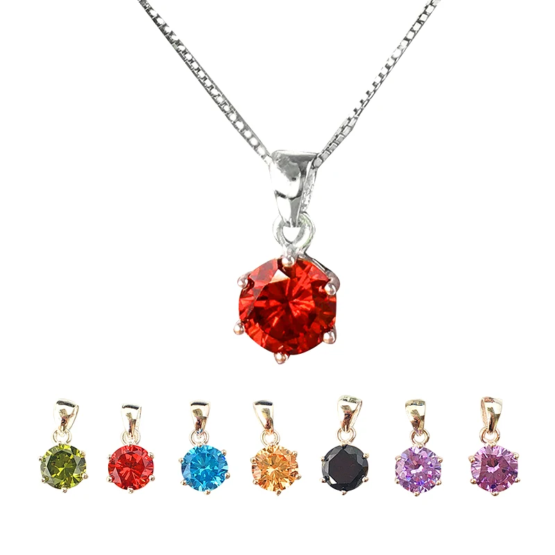 2020 New AAA+Zircon 8 Color Round Pendant Necklace Women 925 silver necklaces Fashion Jewelry colar chain Ladies Christmas gift