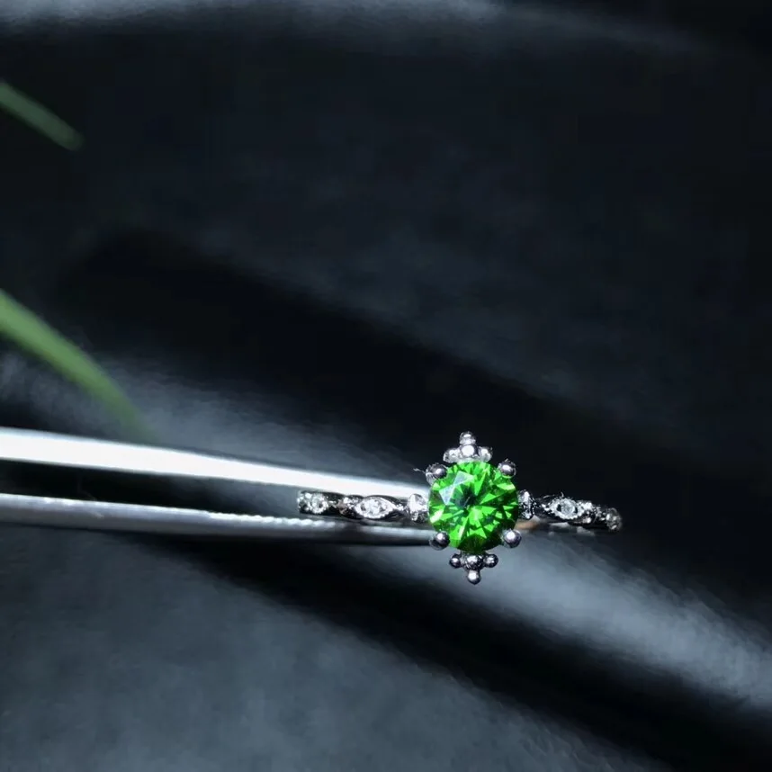 New store welfare natural diopside ring 925 silver Siberia emerald color positive