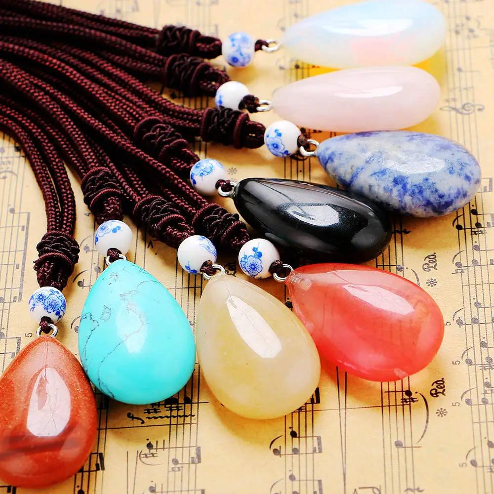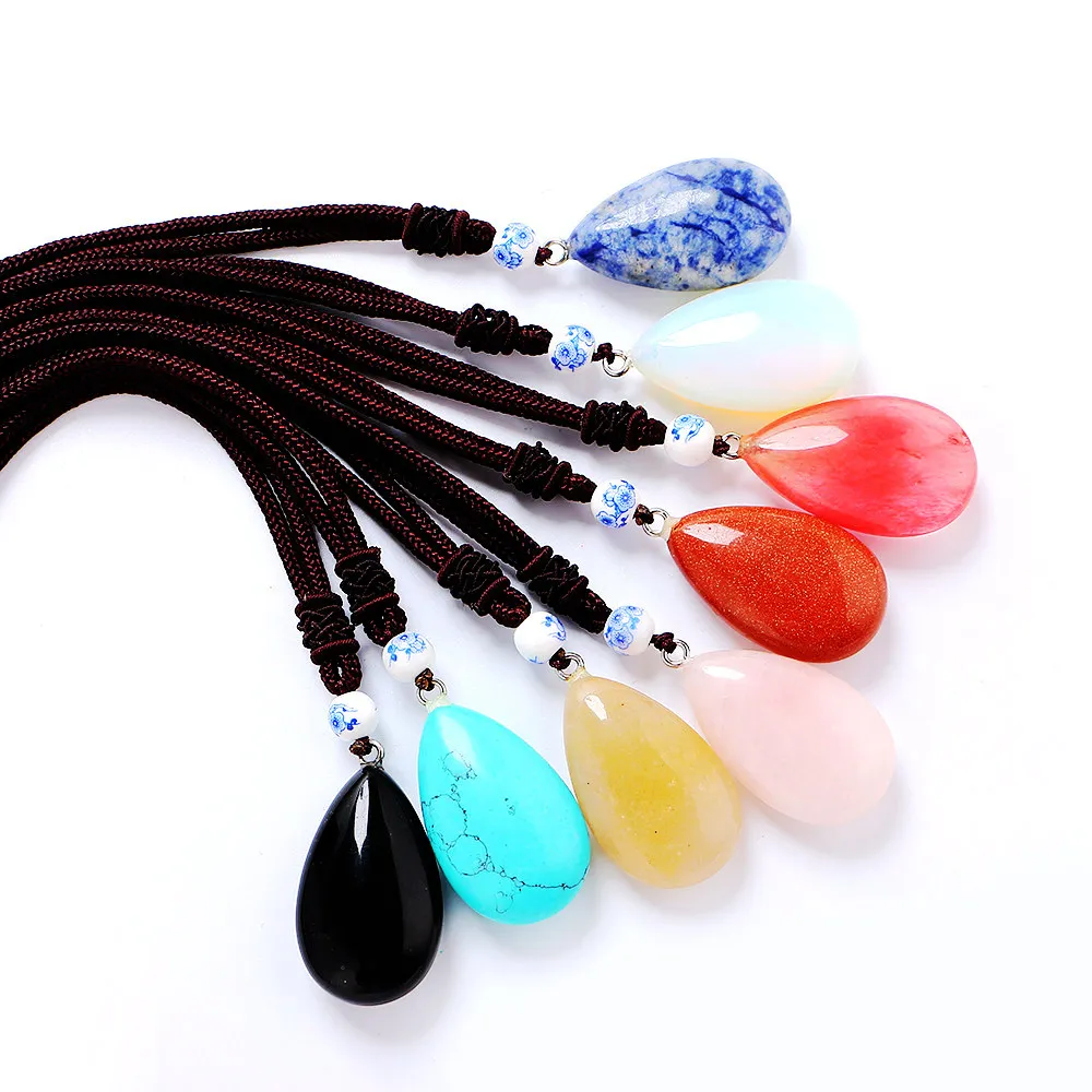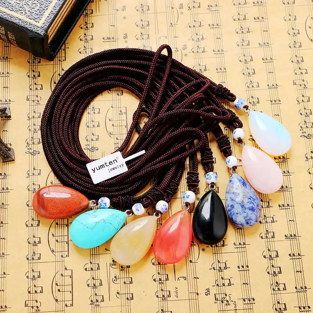 New Various Natural Stone Water Drop Pendant Pendulum Crystal Amethyst obsidian Chakra Healing Reiki Necklace Women Fine Jewelry
