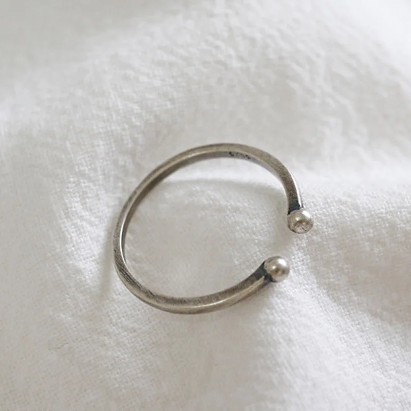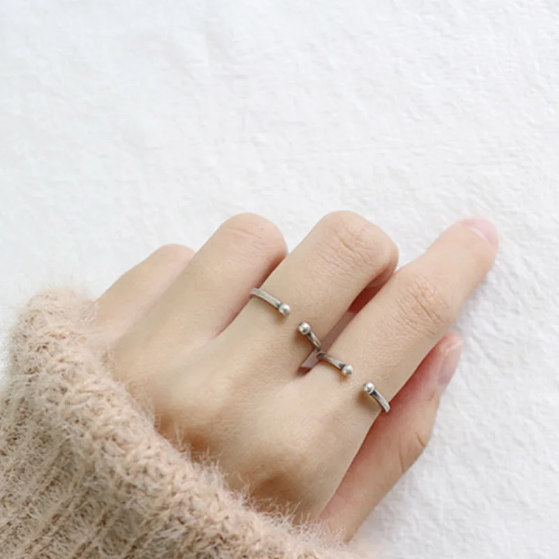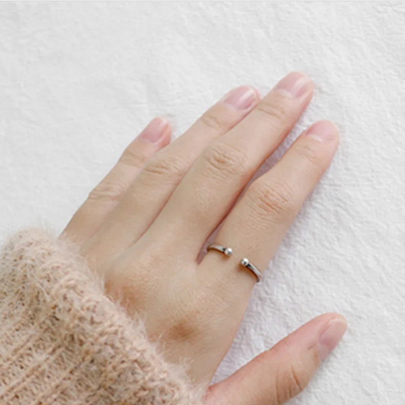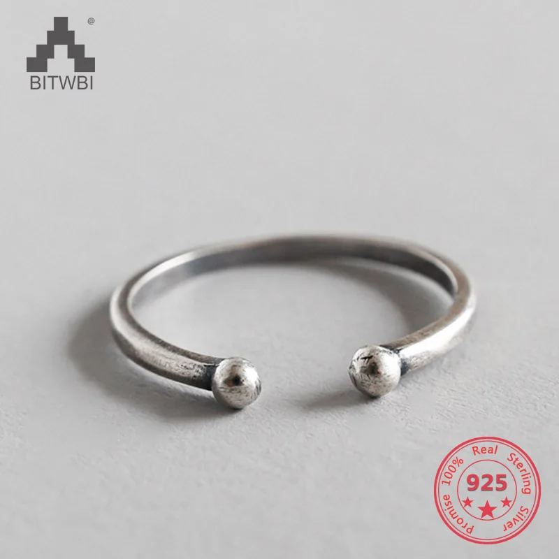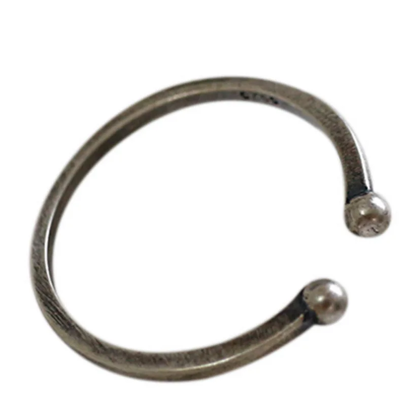 New Women Real 925 Sterling Silver Ring Open Cuff with Double Balls Shape Vintage Style Jewelry Accessorie Gift