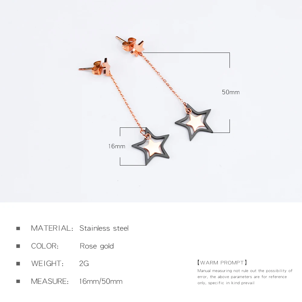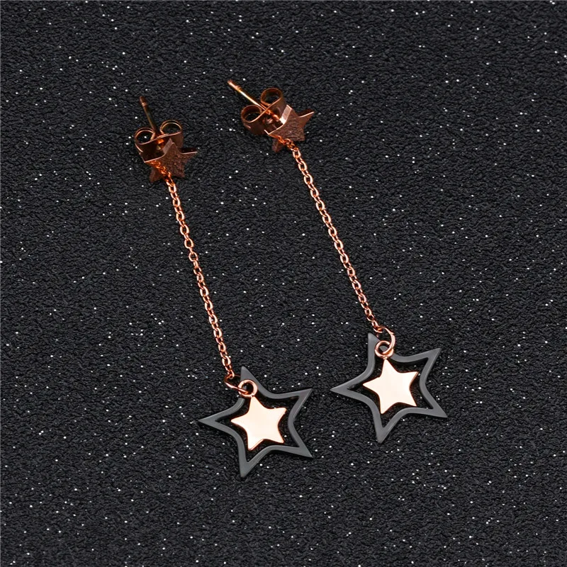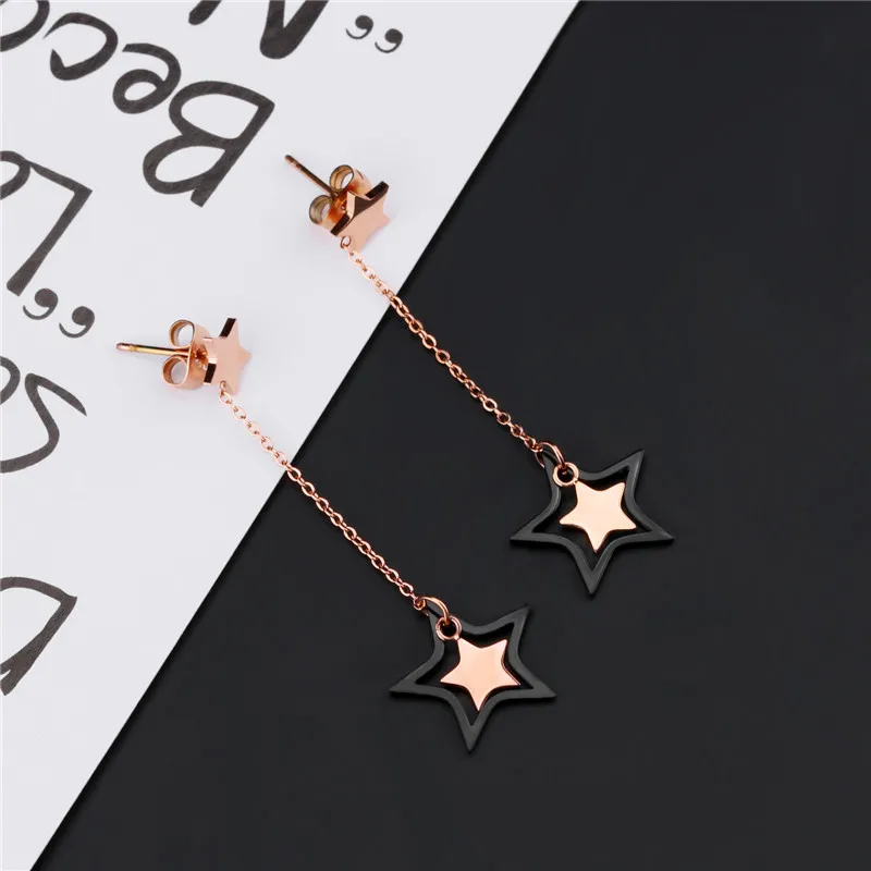 2020 Fashion Female Dangle Earring Jewelry Rose Gold Color Double Star Long Drop Earring For Women Wholesale