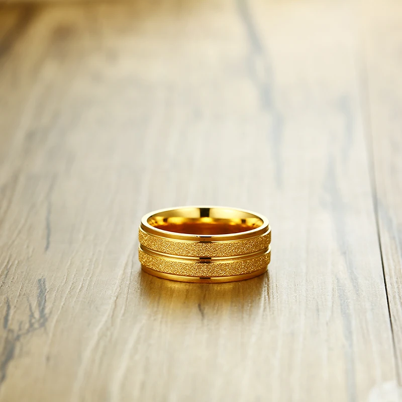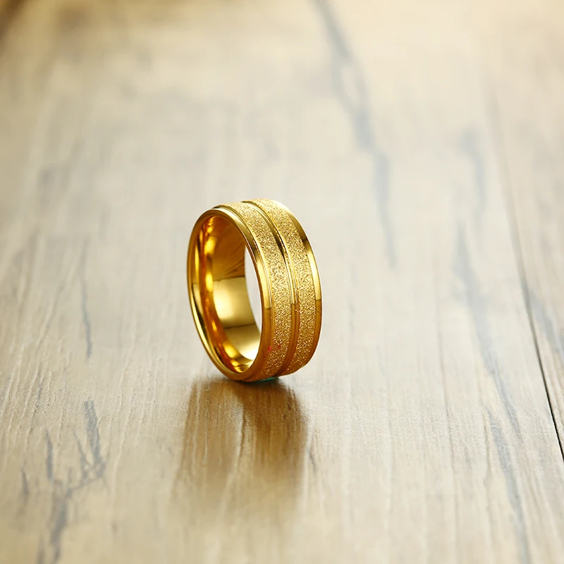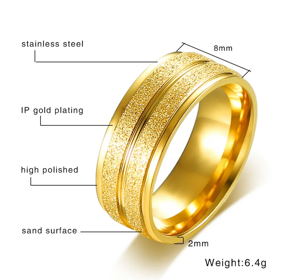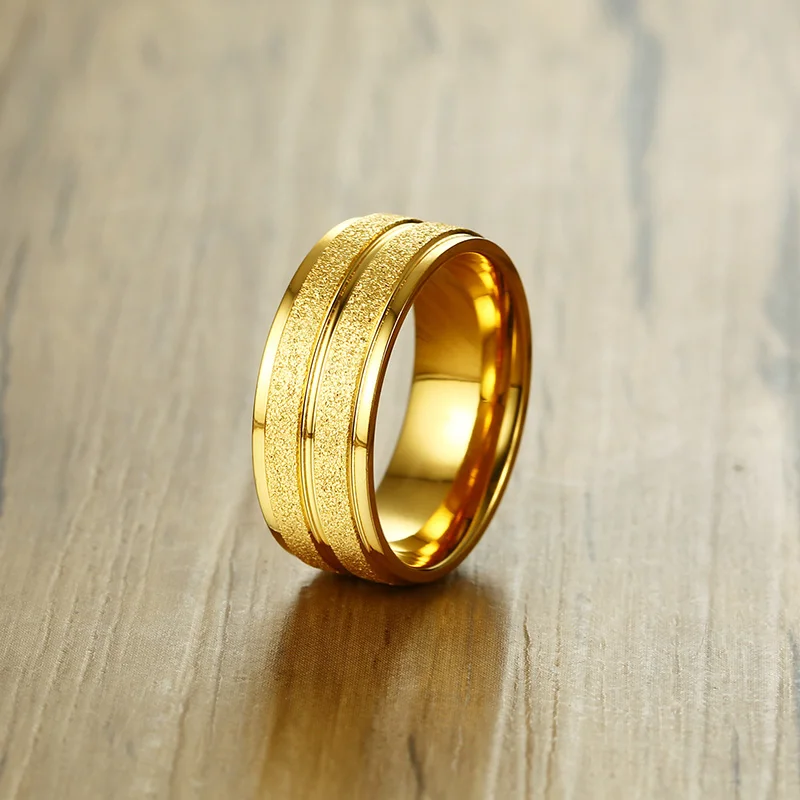 2020 Fashion Gold Color Stainless Steel Scrub Ring For Men High Quality Male Wedding Jewelry Wholesale Dropship