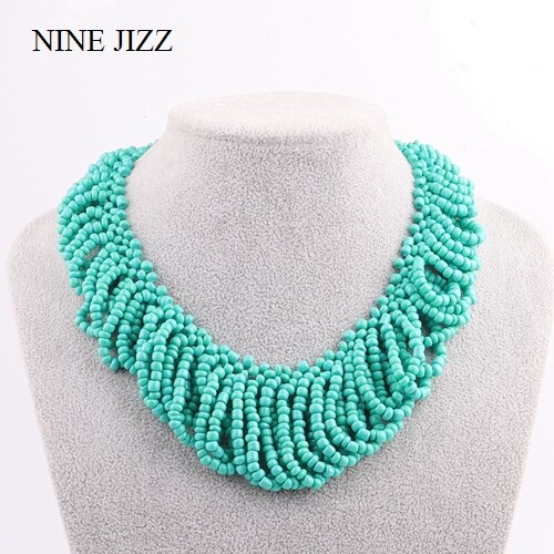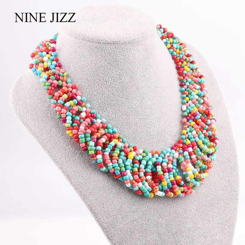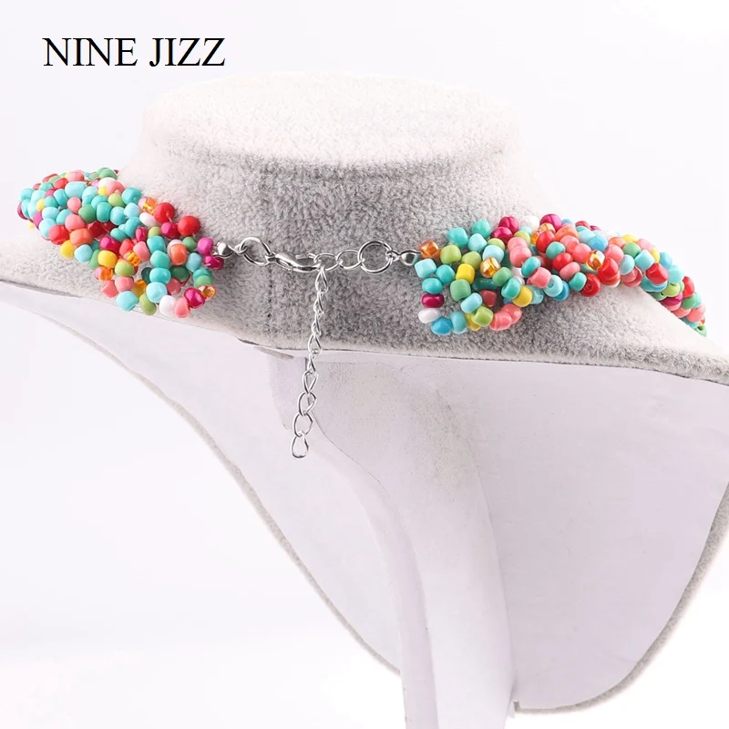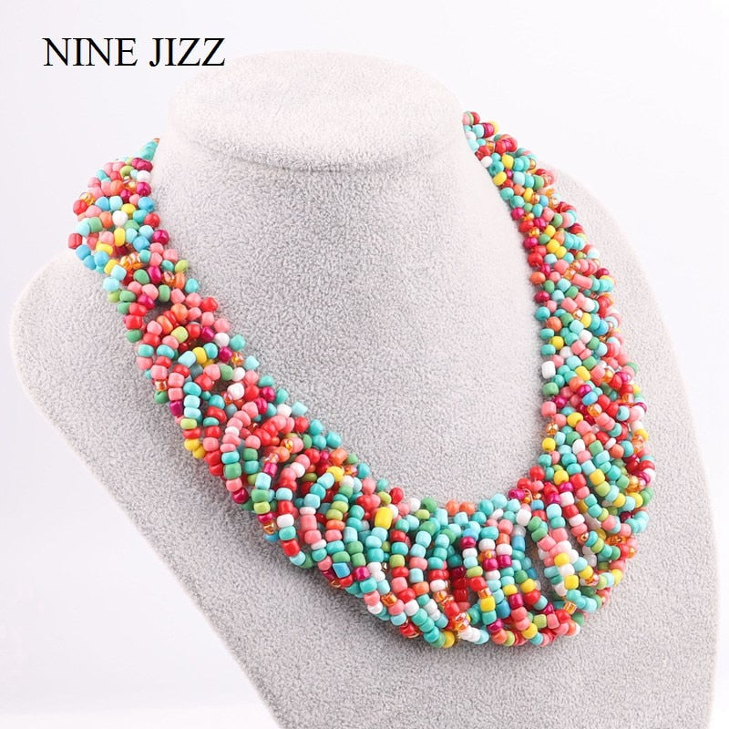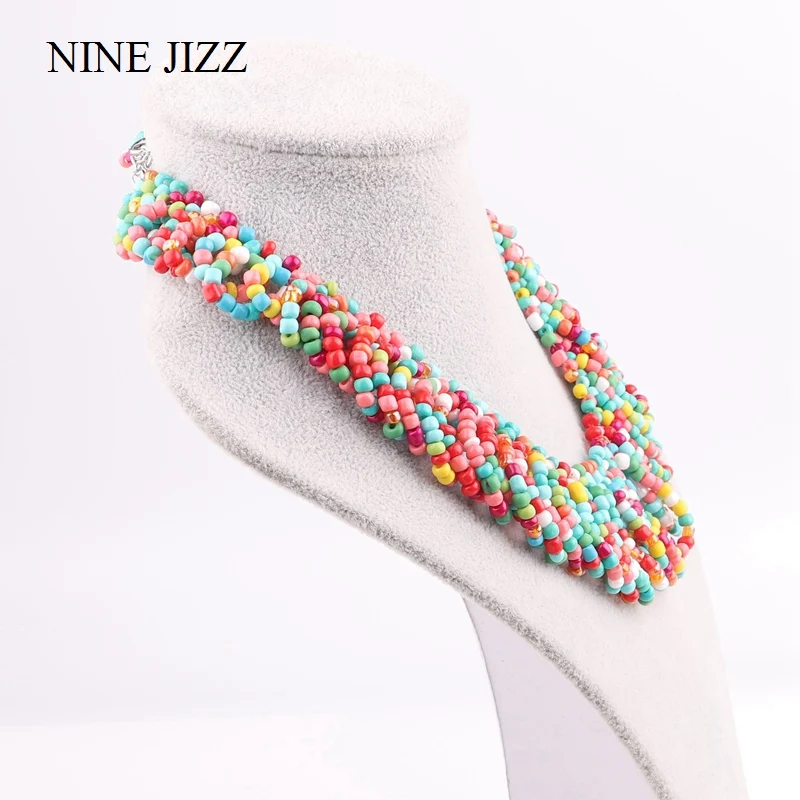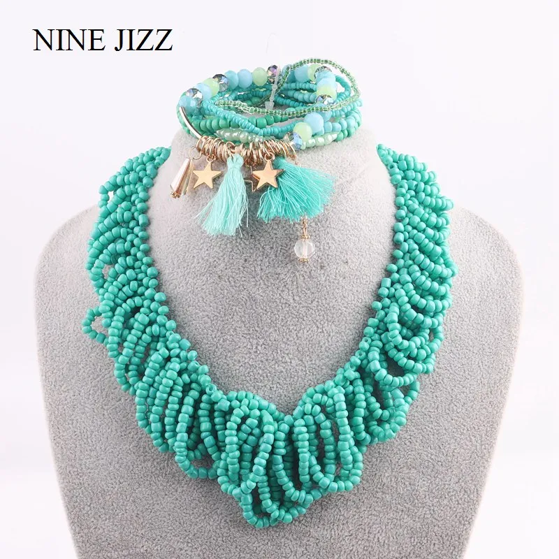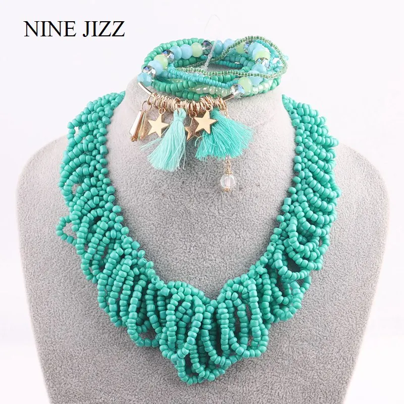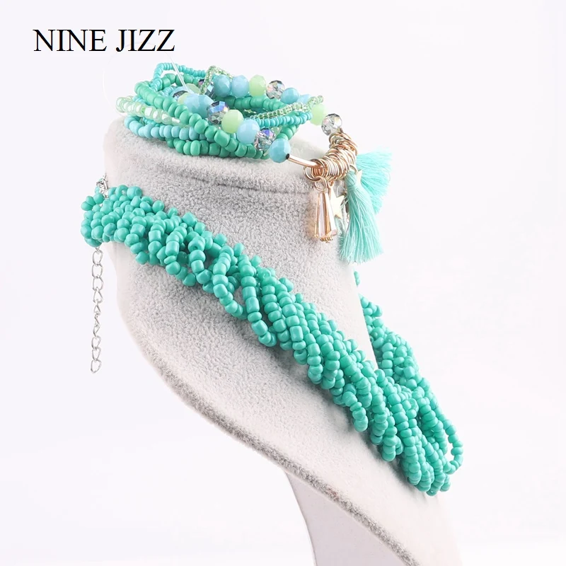 NINEJIZZ Bohemian Necklaces For Women Jewelry Handwoven Collier Long Tassel Beads Choker Statement Necklace Bracelet Set