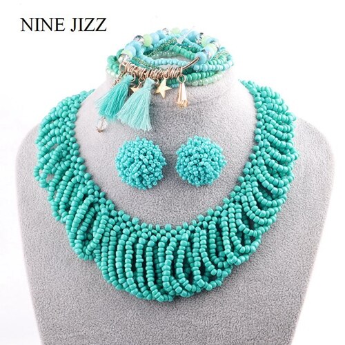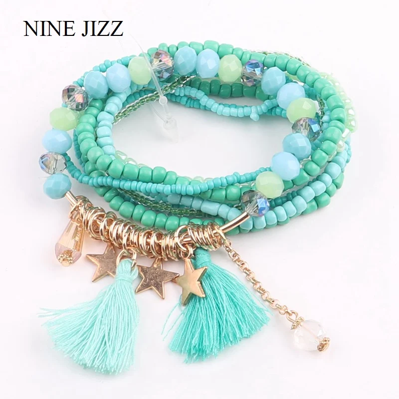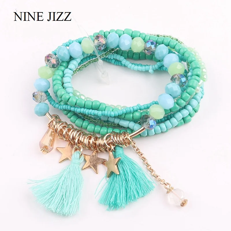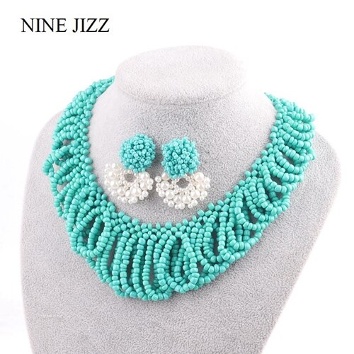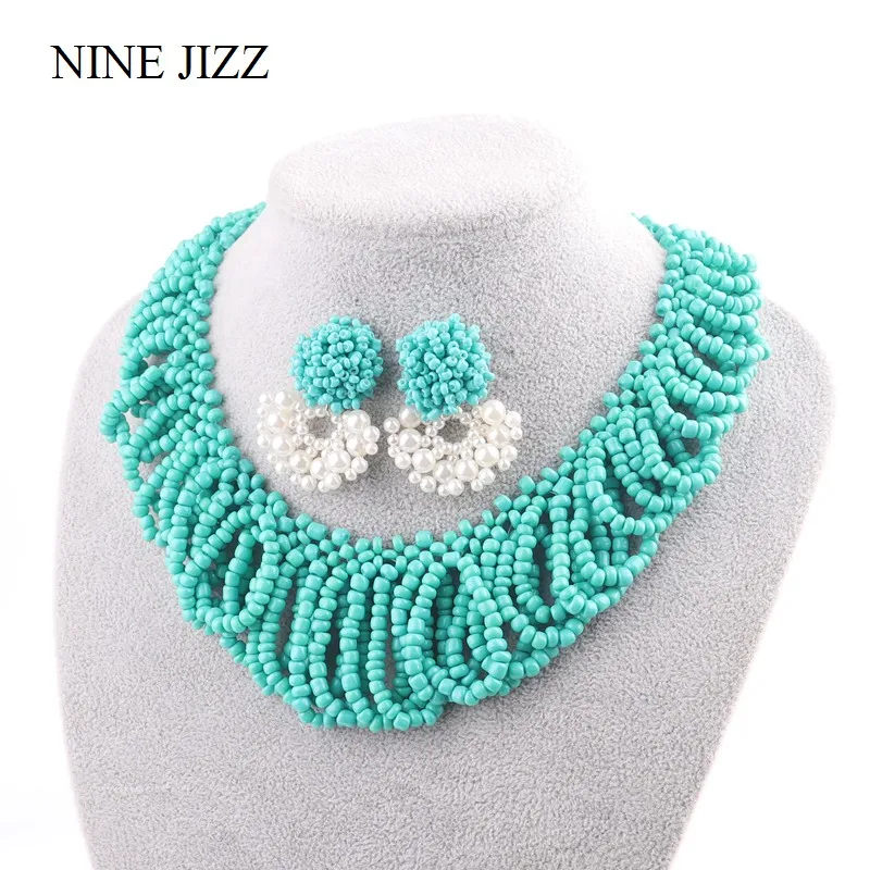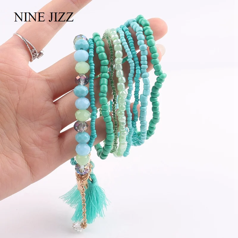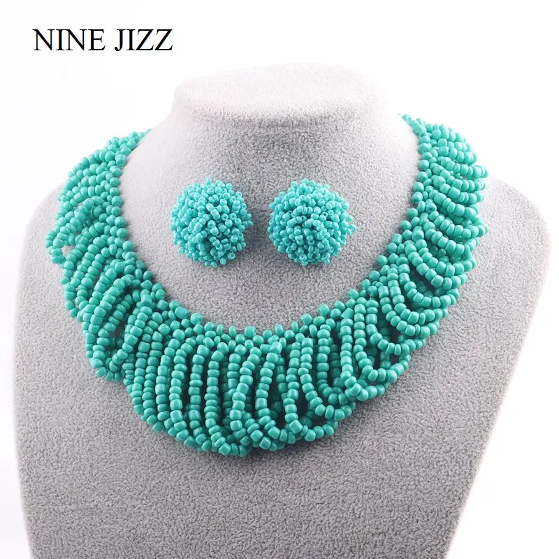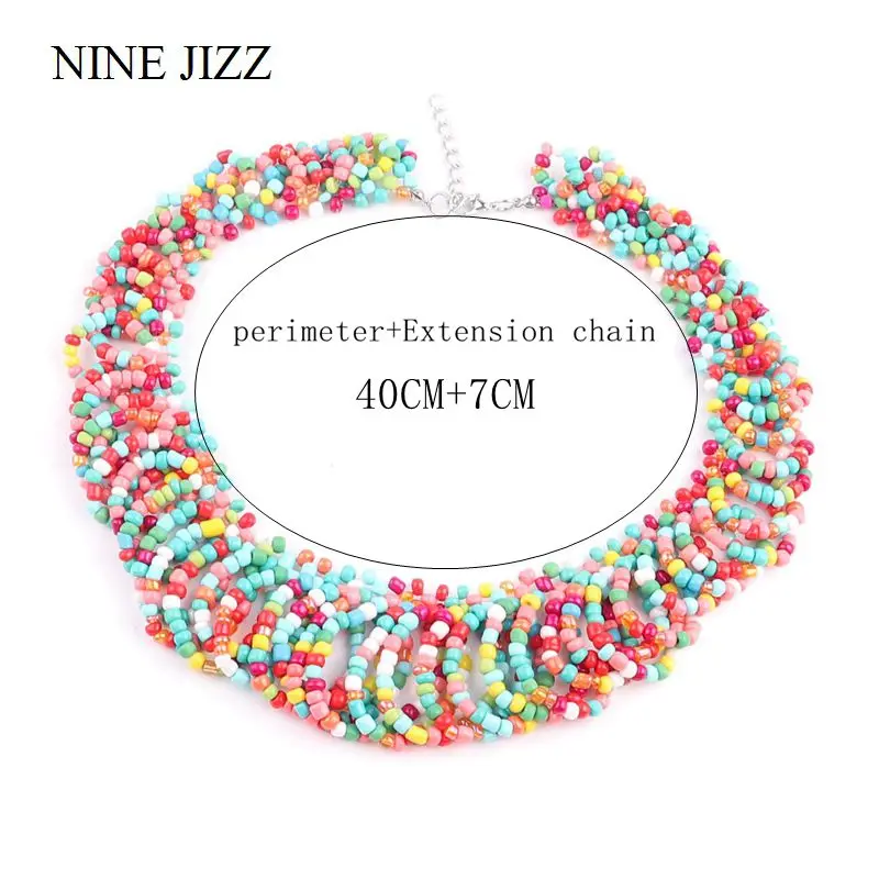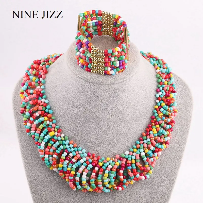 NINEJIZZ Bohemian Necklaces For Women Jewelry Handwoven Collier Long Tassel Beads Choker Statement Necklace Bracelet Set