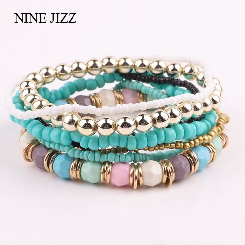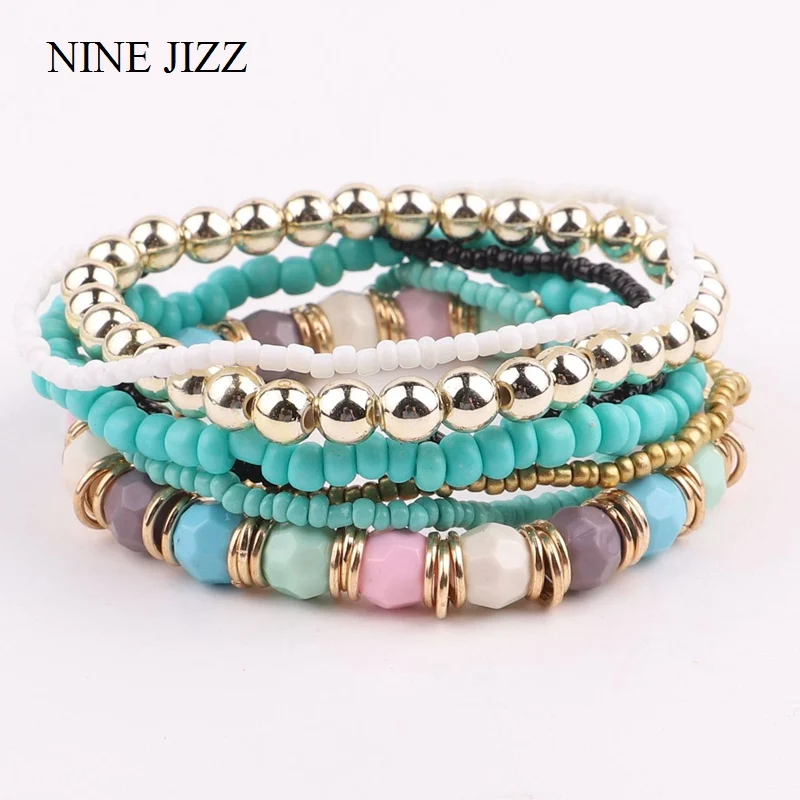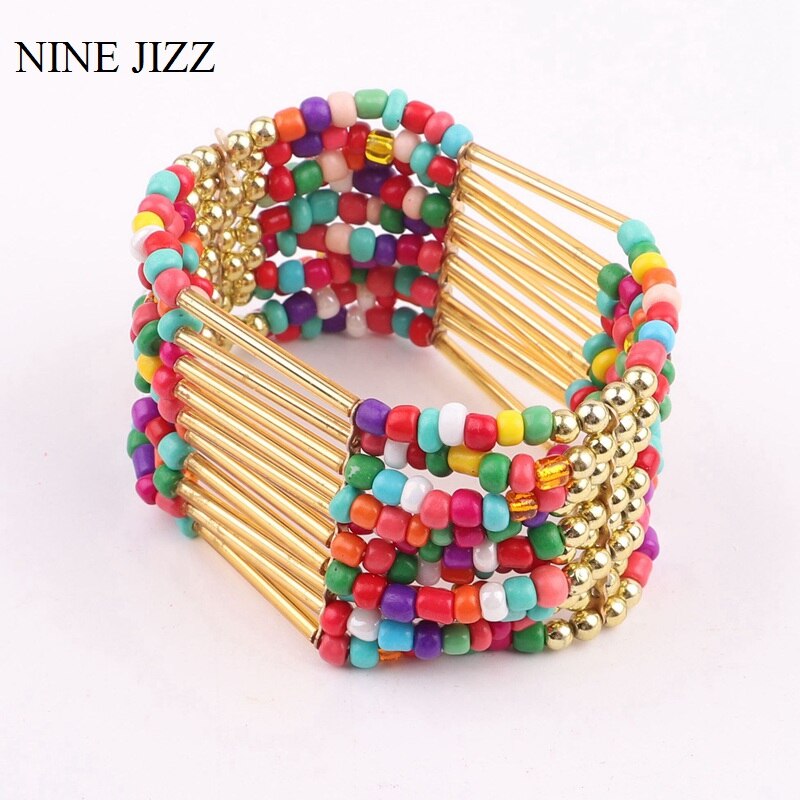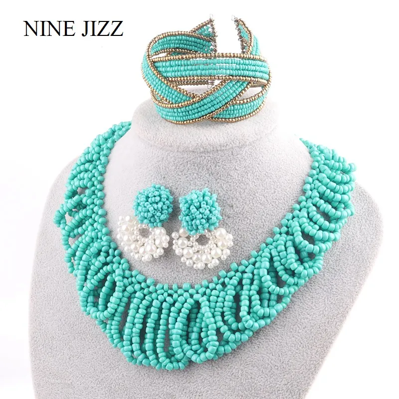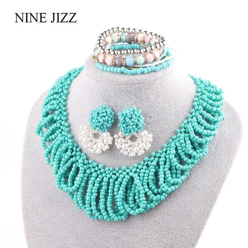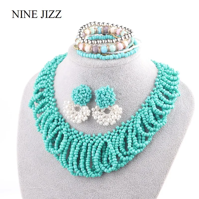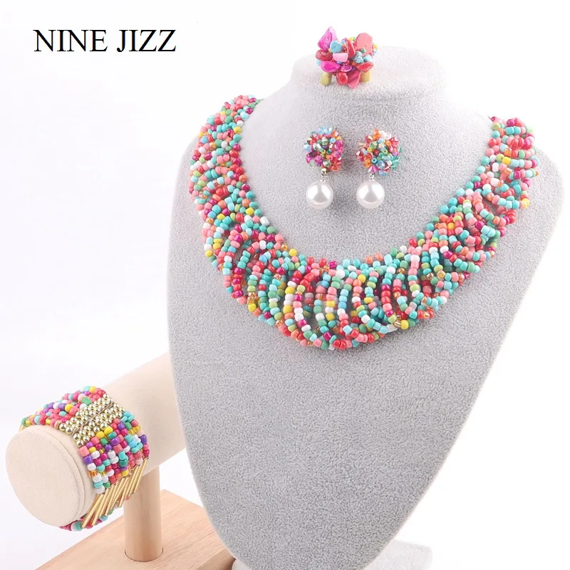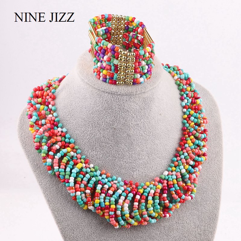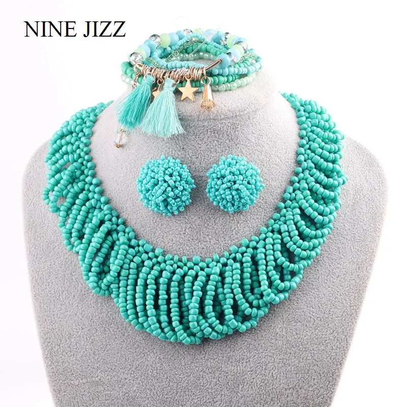 NINEJIZZ Bohemian Necklaces For Women Jewelry Handwoven Collier Long Tassel Beads Choker Statement Necklace Bracelet Set
