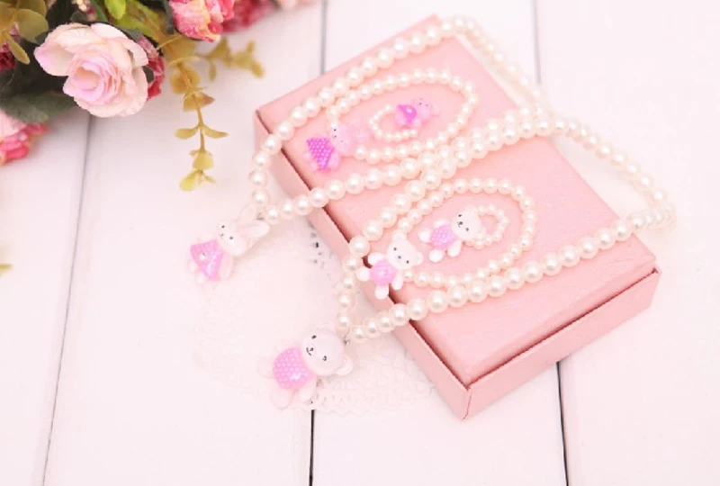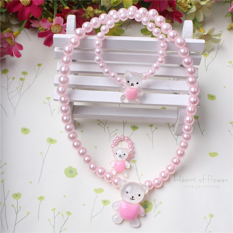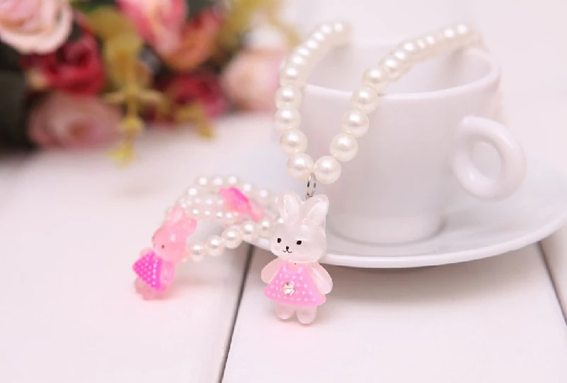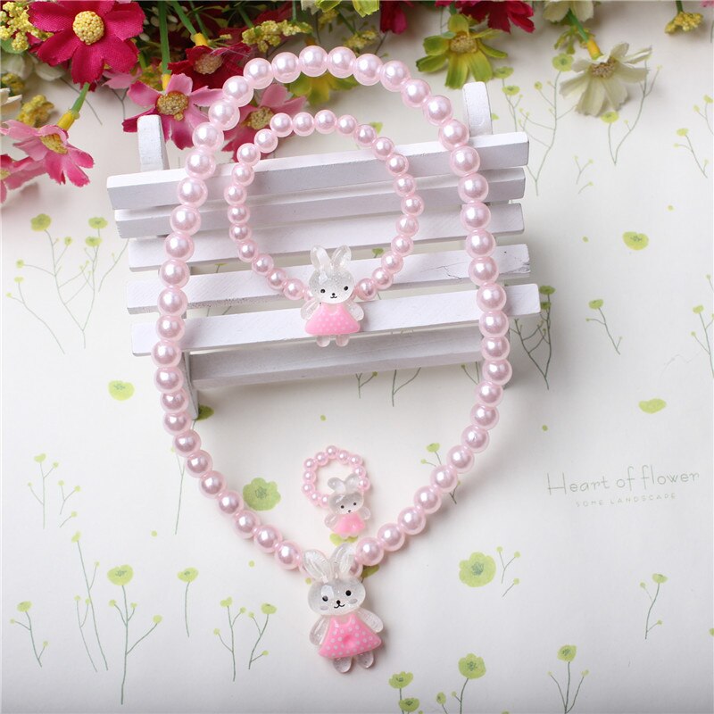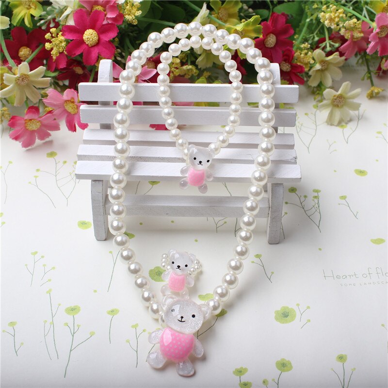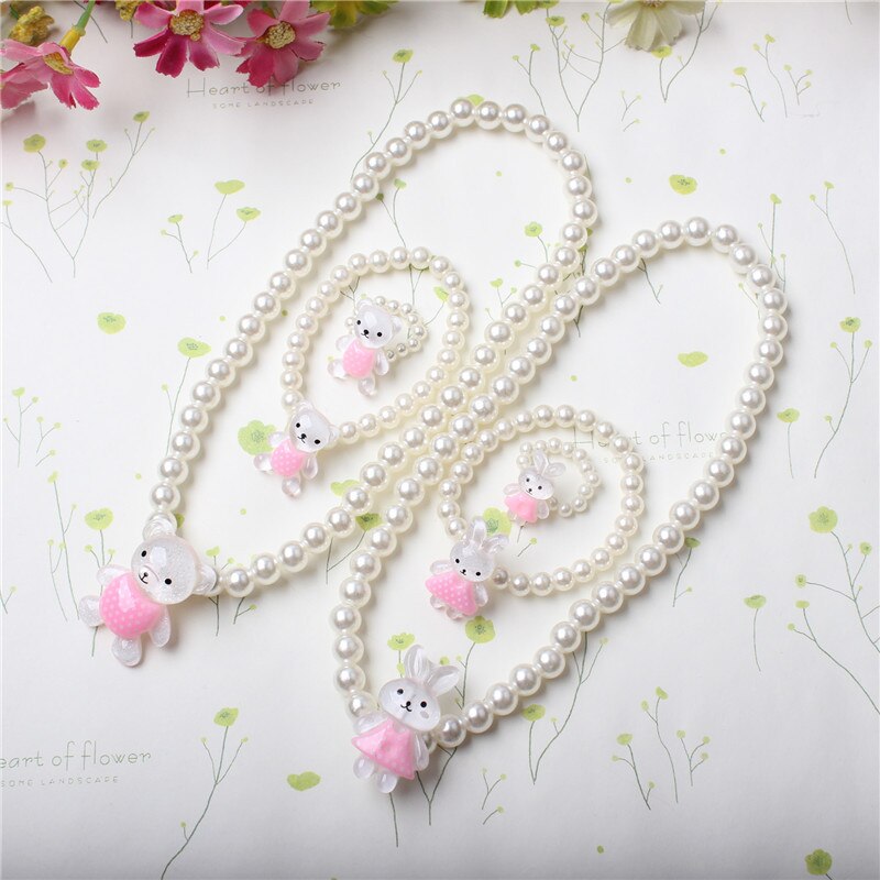 Niño niña 3 uds collar con cuentas de perlas conjunto de dibujos animados oso conejo COLLAR COLGANTE