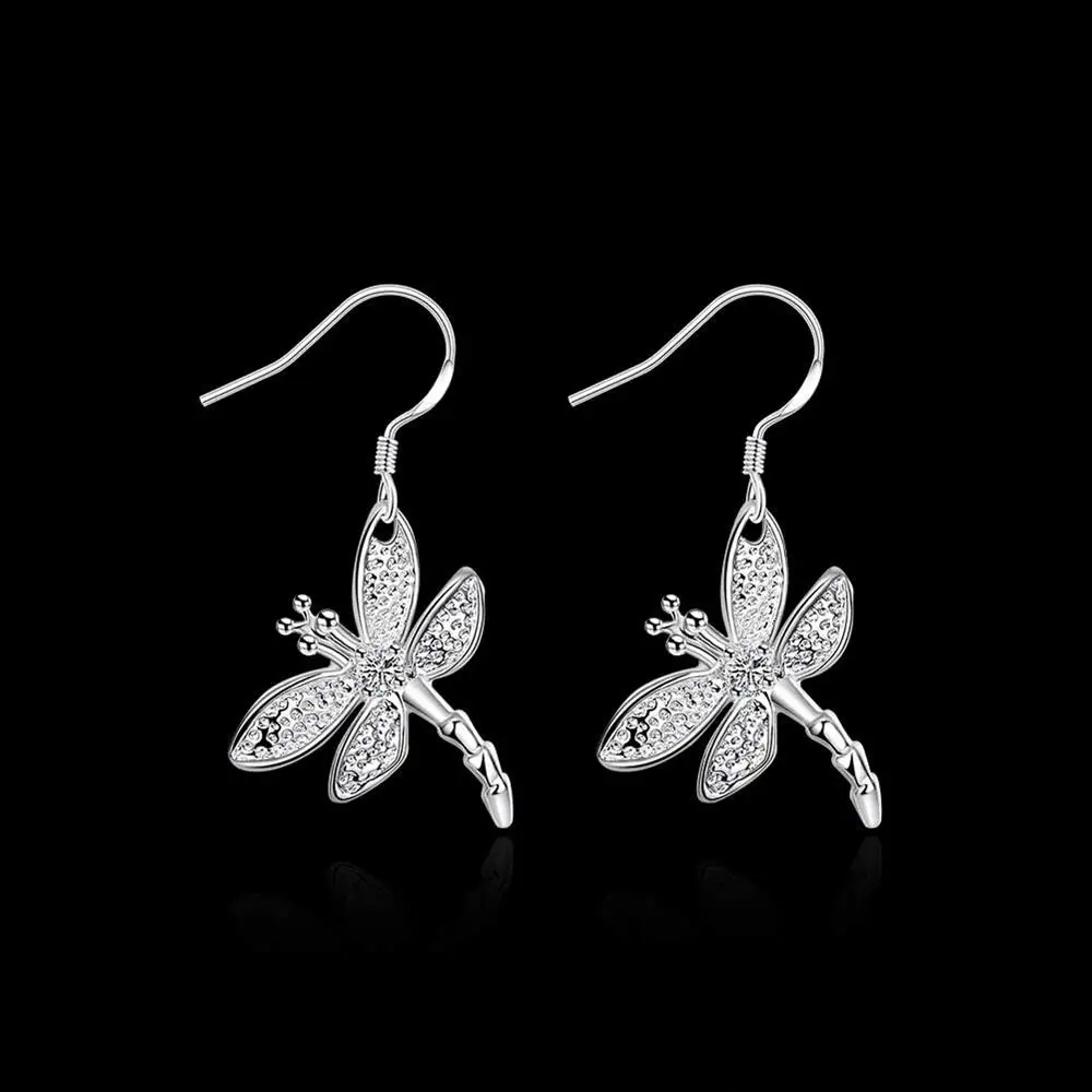 noble Jewelry 925 Sterling Silver crystal dragonfly earrings for Woman friend Gifts party wedding