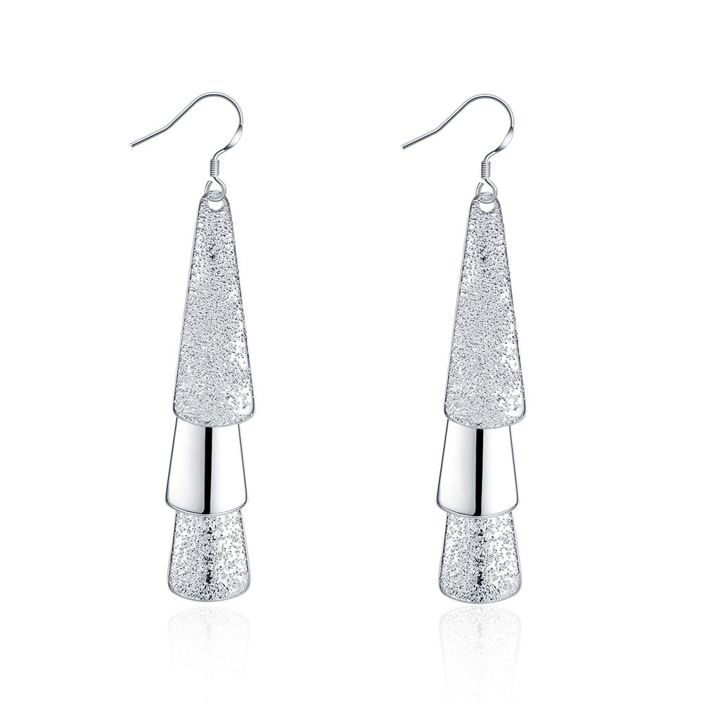 noble Jewelry 925 Sterling Silver elegant geometry long earring for Woman wedding party Holiday gifts