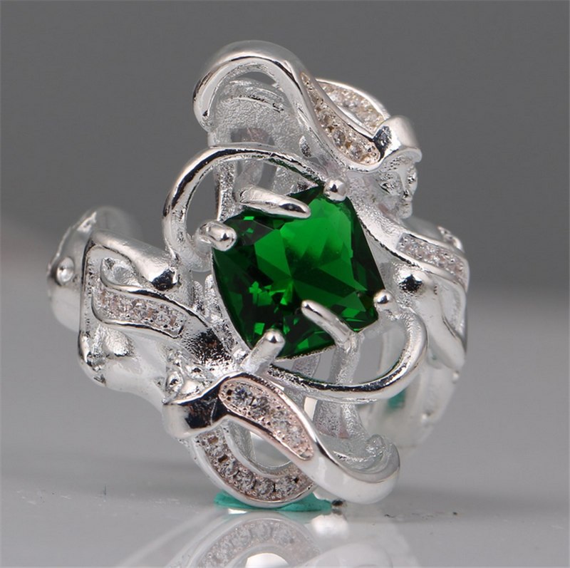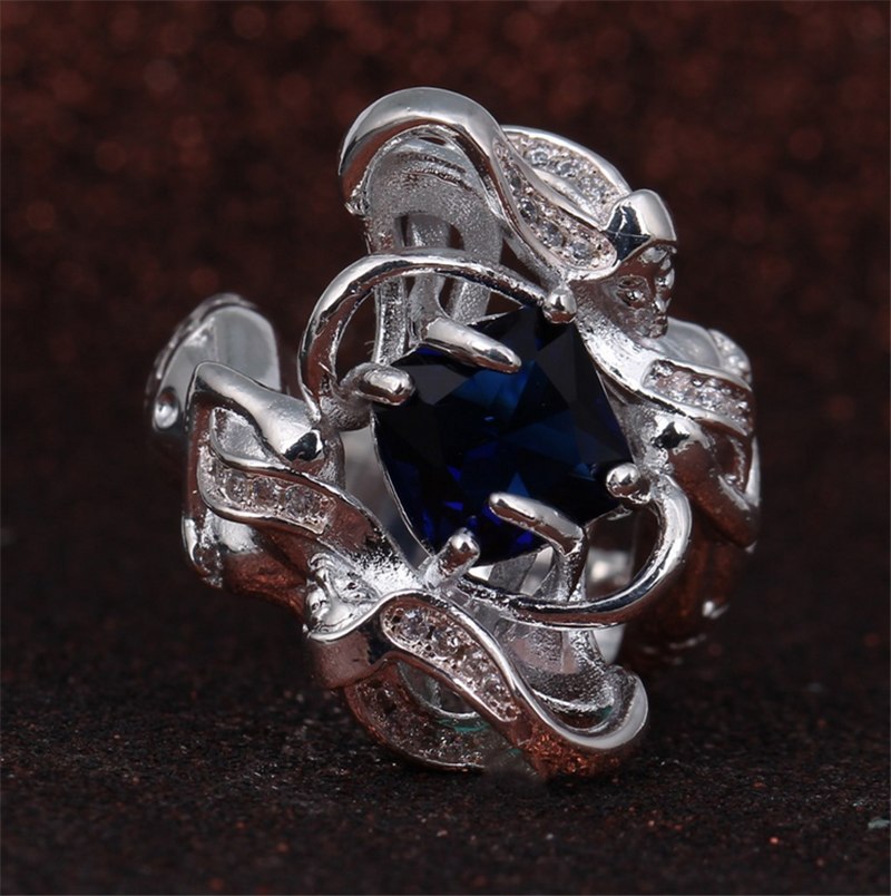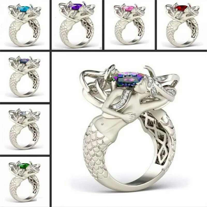 Noble S925 Mermaid, Cubic Zirconia CZ, sparkling silver lining, women's wedding ring jewelry.