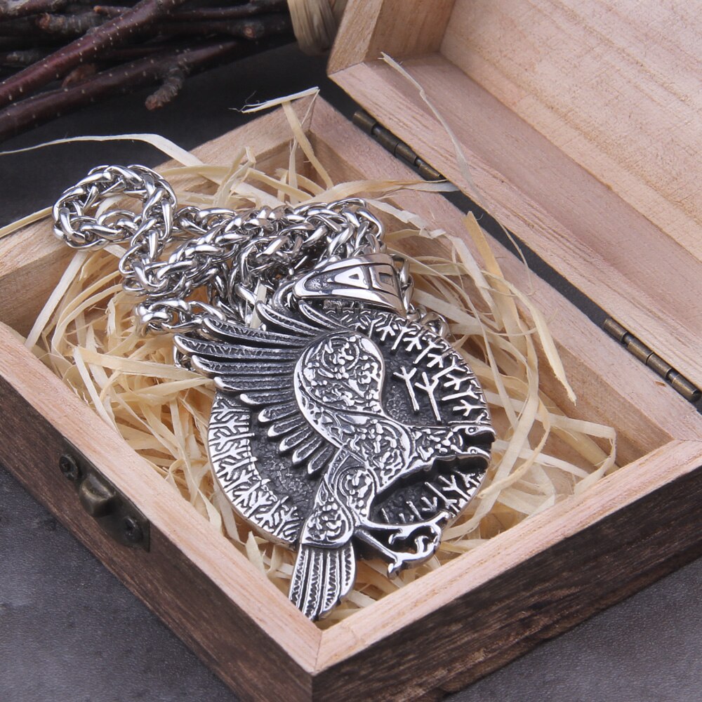 Norse Odin Symbol Viking Raven Amulet Runes Algiz Protection Wicca Talisman Crow Pendant Necklace Men
