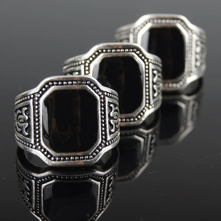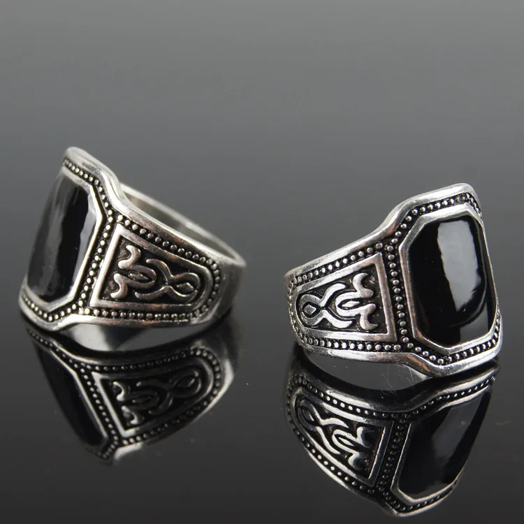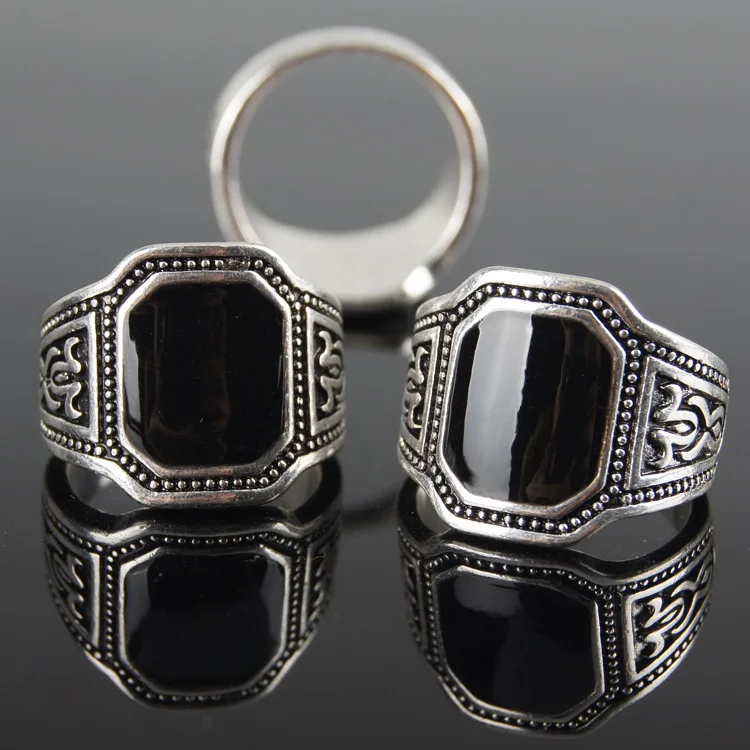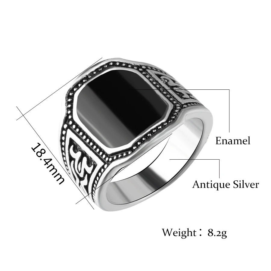 Punk Antique Silver Color Signet Rings Black Enamel Men Finger Ring For Male Co Knuckle Jewelry Bijoux Anel