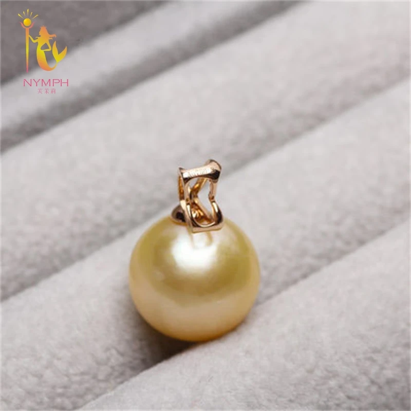 genuine high quality 10-11 mm round golden south sea pearl necklace&pendant with real 18 k gold,2020 DZ533