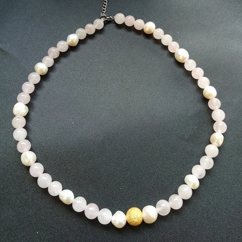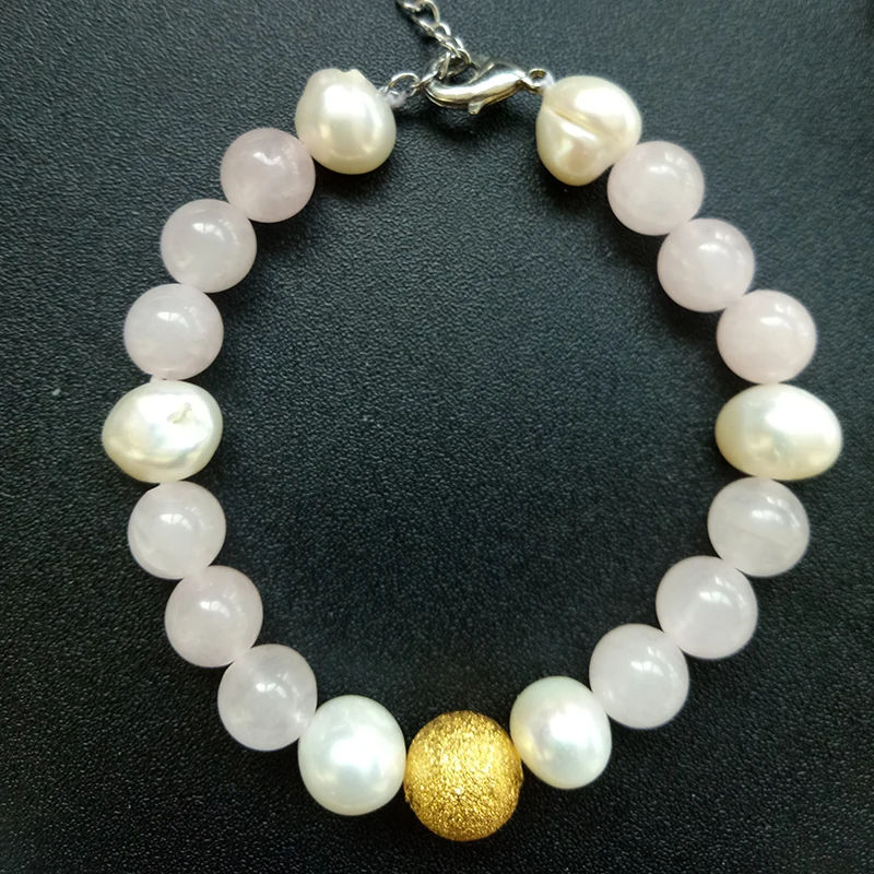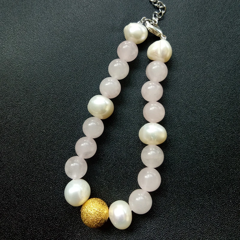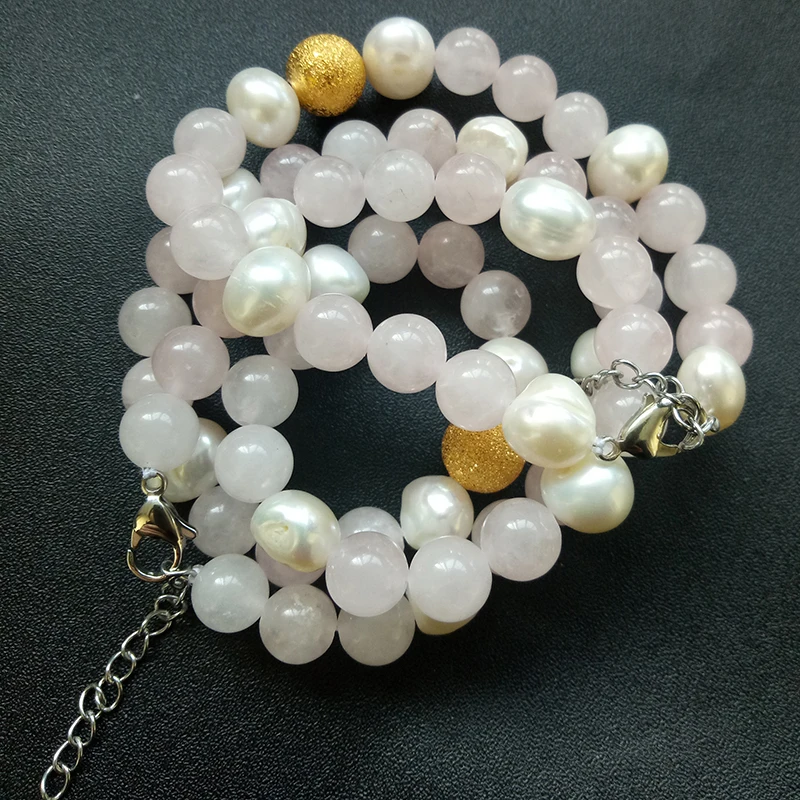 Natural Baroque Pearl Jewelry Set For Women Pink Agate Stone Beads Necklace Bracelet Gift TZZ208
