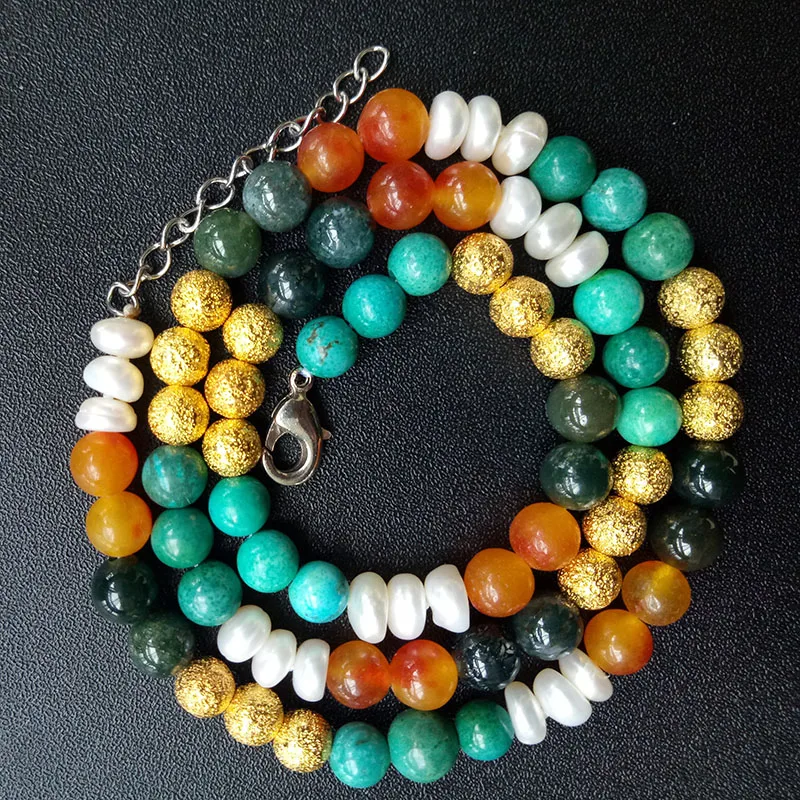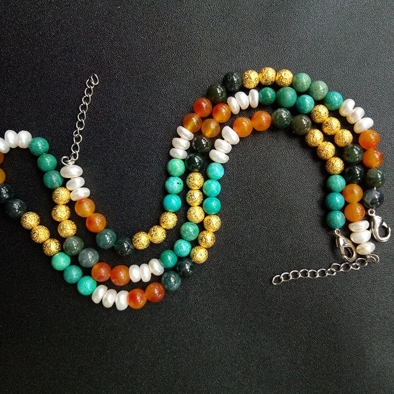 Natural White Pearl Jewelry Set For Women Colorful Stone Beads Necklace Bracelet Jewelry Gift TZZ209